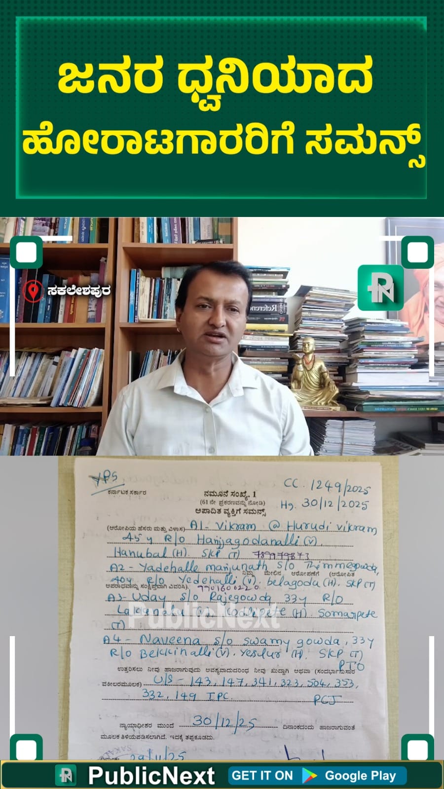 ಸಕಲೇಶಪುರ: ನ್ಯಾಯಕ್ಕಾಗಿ ಧ್ವನಿ ಎತ್ತಿದ ಸಾಮಾಜಿಕ ಹೋರಾಟಗಾರರ ಮೇಲೆ ಪೊಲೀಸ್ ವ್ಯವಸ್ಥೆಯ ಕಠೋರ ಕ್ರಮ – ಇದು ಕೇವಲ ಕಾನೂನು ಪ್ರಕ್ರಿಯೆಯೇ ಅಥವಾ ವ್ಯವಸ್ಥಿತ ದೌರ್ಜನ್ಯದ ಭಾಗವೇ? ಸಕಲೇಶಪುರ ತಾಲೂಕಿನಲ್ಲಿ ನಡೆದ ಕಾಡಾನೆ-ಮಾನವ ಸಂಘರ್ಷದ ಪ್ರತಿಭಟನೆಗಳು, ಅರ್ಜುನ ಆನೆಯ ಮರಣದ ಸತ್ಯಾಂಶಗಳ ಬಯಲುಗೊಳಿಸುವ ಆಗ್ರಹ ಹಾಗೂ ಅರ್ಜುನ ಸ್ಮಾರಕ ನಿರ್ಮಾಣಕ್ಕೆ ಒತ್ತಾಯಿಸಿದ ಹೋರಾಟದ ಹಿನ್ನೆಲೆಯಲ್ಲಿ, ಕನ್ನಡಪರ ಹೋರಾಟಗಾರ ಹಾಗೂ ಕಾಂಗ್ರೆಸ್ ಕಾರ್ಯಕರ್ತ ಯಡೇಹಳ್ಳಿ ಆರ್. ಮಂಜುನಾಥ್ ಸೇರಿದಂತೆ 21 ಮಂದಿಗೆ ನಿನ್ನೆ 8 ವಿವಿಧ ಸೆಕ್ಷನ್ಗಳ ಅಡಿಯಲ್ಲಿ ಪೊಲೀಸರು ಸಮನ್ಸ್ ಜಾರಿ ಮಾಡಿದ್ದು, ತಾಲೂಕಿನಾದ್ಯಂತ ತೀವ್ರ ಚರ್ಚೆ ಹುಟ್ಟುಹಾಕಿದೆ.
