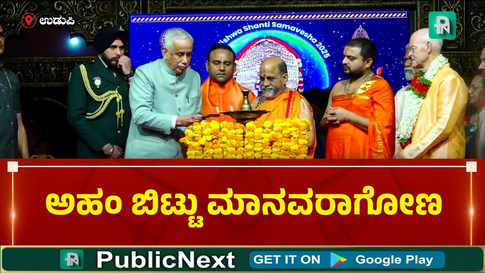 ಪರ್ಯಾಯ ಶ್ರೀ ಪುತ್ತಿಗೆ ಮಠ ಶ್ರೀ ಕೃಷ್ಣಮಠದ ಆಶ್ರಯದಲ್ಲಿ ರಾಜಾಂಗಣದಲ್ಲಿ ಶನಿವಾರ ನಡೆದ ವಿಶ್ವಶಾಂತಿ ಸಮಾವೇಶದಲ್ಲಿ ಅಧ್ಯಕ್ಷತೆ ವಹಿಸಿ ಅವರು ಮಾತನಾಡಿದರು. ಪರ್ಯಾಯ ಶ್ರೀ ಪುತ್ತಿಗೆ ಮಠಾಧೀಶರಾದ ಶ್ರೀ ಸುಗುಣೇಂದ್ರತೀರ್ಥ ಶ್ರೀಪಾದರು ಅನುಗ್ರಹಿಸಿ, ಮನುಷ್ಯ ಭಾವನಾತ್ಮಕ ಮತ್ತು ಪ್ರಾದೇಶಿಕ ಸಂಕುಚಿತತೆ ಬಿಡಬೇಕು. ಸ್ವಾರ್ಥ ರಹಿತ ಚಿಂತನೆಯಿಂದ ಶಾಂತಿ ಸ್ಥಾಪನೆ ಸಾಧ್ಯ. ಕುರುಡು ಮೋಹವು ಮಹಾಭಾರತದ ಯುದ್ಧಕ್ಕೂ ಕಾರಣವಾಗಿತ್ತು. ಗೀತೆಯ ಬೋಧನೆ ಮೂಲಕ ಶ್ರೀ ಕೃಷ್ಣನು ಧರ್ಮಸ್ಥಾಪನೆ ಮಾಡಿದ್ದಾನೆ. ಜಗತ್ತು ತಲ್ಲಣಗೊಂಡಿದೆ ಮತ್ತು ಅಶಾಂತಿಯಿಂದ ಸಾಗುತ್ತಿದೆ. ಇಂತಹ ಪರಿಸ್ಥಿತಿಯಿಂದ ಹೊರಬರಲು ಸೌಹಾರ್ದತೆ, ವಿಶ್ವಾಸ ಹಾಗೂ ವಿನಯತೆ ಇದ್ದಾಗ ಮಾತ್ರ ಸಾಧ್ಯ. ನಾನೇ ಶ್ರೇಷ್ಠ ಎಂಬ ಮಾನಸಿಕತೆ ಬಿಡಬೇಕು. ನಾವೆಲ್ಲರೂ ಮಾನವೀಯತೆಯ ಸೇವಕರು ಎಂಬುದು ಅರ್ಥೈಸಿಕೊಂಡಾಗ ಶಾಂತಿ ಸ್ಥಾಪನೆ ಸಾಧ್ಯ ಎಂದರು.