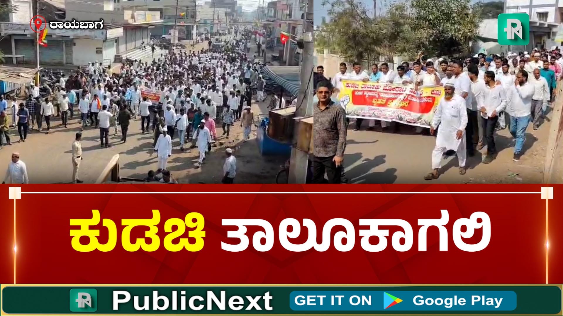 ರಾಯಬಾಗ: ಕುಡಚಿ ಪಟ್ಟಣವನ್ನು ತಾಲೂಕು ಕೇಂದ್ರವನ್ನಾಗಿ ಘೋಷಿಸುವಂತೆ ಆಗ್ರಹಿಸಿ ಕುಡಚಿಯಲ್ಲಿ ಬೃಹತ್ ಪ್ರತಿಭಟನೆ ನಡೆಸಲಾಯಿತು.