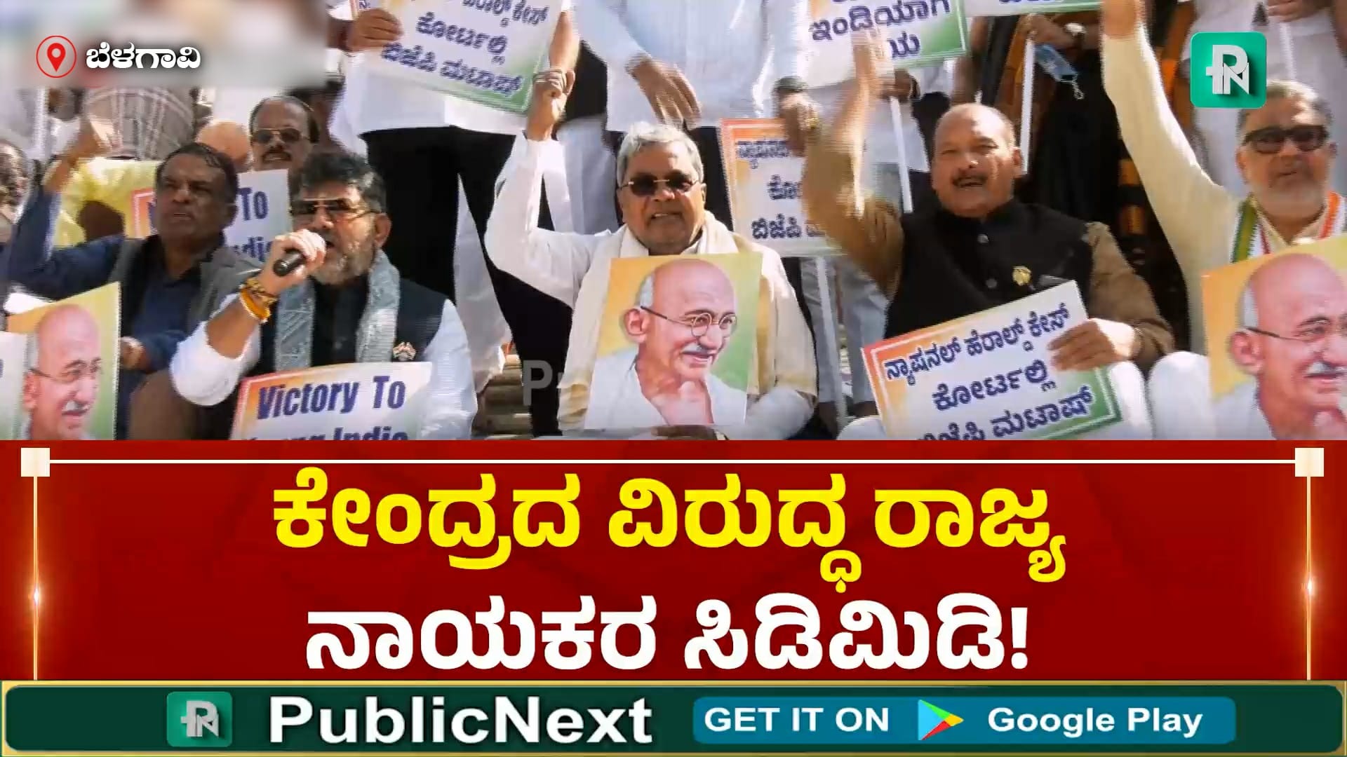 ಬೆಳಗಾವಿ: ನ್ಯಾಷನಲ್ ಹೆರಾಲ್ಡ್ ಪ್ರಕರಣದಲ್ಲಿ ಕೇಂದ್ರದ ಬಿಜೆಪಿ ಸರ್ಕಾರ ಅಧಿಕಾರ ದುರುಪಯೋಗಪಡಿಸಿಕೊಂಡಿರುವುದನ್ನು ಖಂಡಿಸಿ ಮತ್ತು ಸಾಂವಿಧಾನಿಕ ಸಂಸ್ಥೆಗಳ ದುರ್ಬಳಕೆ ವಿರುದ್ಧ, ಸುವರ್ಣಸೌಧದ ಗಾಂಧಿ ಪ್ರತಿಮೆ ಬಳಿ ಪ್ರತಿಭಟನೆ ನಡೆಯಿತು. ಈ ಪ್ರತಿಭಟನೆಯಲ್ಲಿ ಮುಖ್ಯಮಂತ್ರಿ ಸಿದ್ದರಾಮಯ್ಯ, ಉಪಮುಖ್ಯಮಂತ್ರಿ ಡಿ.ಕೆ.ಶಿವಕುಮಾರ್ ಸೇರಿ ಎಲ್ಲಾ ಸಚಿವರು ಮತ್ತು ಶಾಸಕರು ಪಾಲ್ಗೊಂಡು ಕೇಂದ್ರದ ವಿರುದ್ಧ ತೀವ್ರ ಆಕ್ರೋಶ ವ್ಯಕ್ತಪಡಿಸಿದರು.