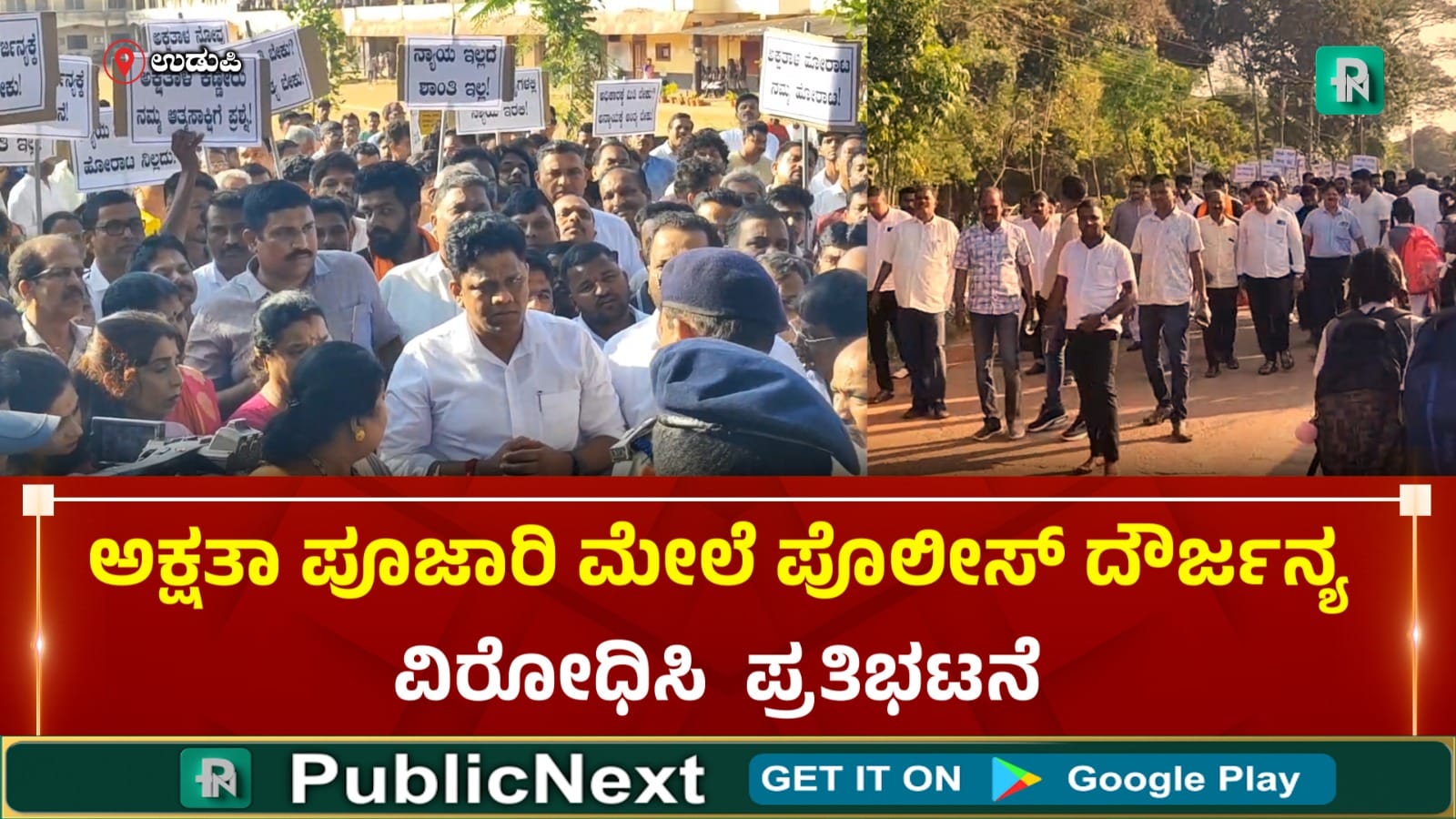 ಪೊಲೀಸ್ ಠಾಣೆಯ ಮುಂಭಾಗದಲ್ಲಿ ಸಾವಿರಾರು ಸಂಖ್ಯೆಯಲ್ಲಿ ಜಮಾಯಿಸಿದ ಬಿಲ್ಲವ ಸಮಾಜದವರು ಅಕ್ಷತಾ ಪೂಜಾರಿ ಅವರಿಗೆ ಪೊಲೀಸರು ದೌರ್ಜನ್ಯ ಎಸಗಿದ್ದಾರೆ. ಅಲ್ಲದೆ, ಆಕೆ ಹಾಗೂ ಆಕೆಯ ತಾಯಿಯ ವಿರುದ್ಧ ಸುಳ್ಳು ಕೇಸ್ ದಾಖಲಿಸಿದ್ದಾರೆ ಎಂದು ಆಕ್ರೋಶ ವ್ಯಕ್ತಪಡಿಸಿದರು.