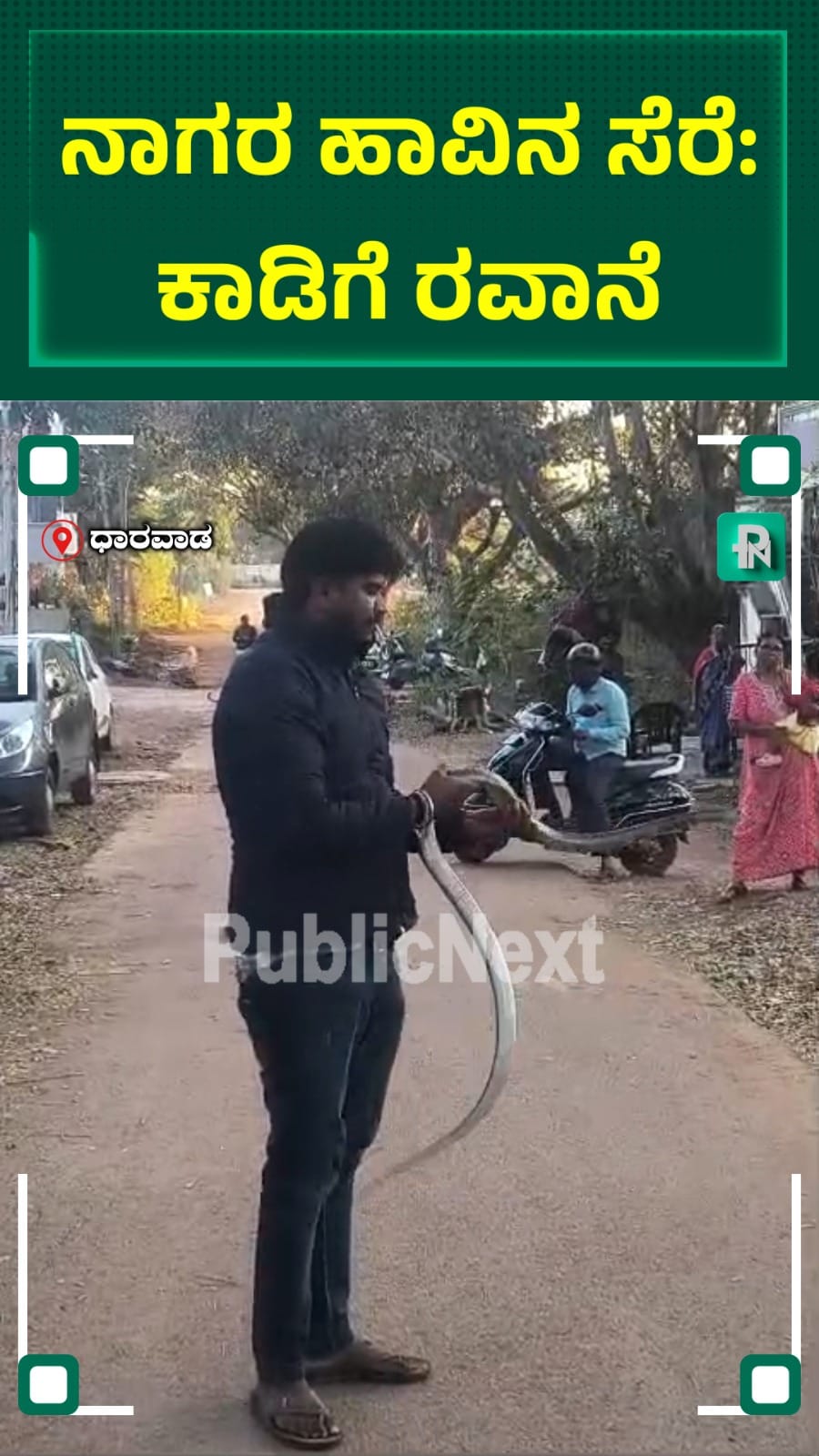 ಧಾರವಾಡ ಚೈತನ್ಯ ನಗರದ ಮನೆಯೊಂದರ ಹಿತ್ತಲಿನಲ್ಲಿ ನಾಗರ ಹಾವು ಬುಸುಗುಡತ್ತ ಕುಳಿತಿತ್ತು. ಸುಮಾರು ಹೊತ್ತಿನಿಂದ ಅಲ್ಲೇ ಇದ್ದ ಹಾವನ್ನು ಕಂಡು ಸ್ಥಳೀಯರು ಉರಗ ರಕ್ಷಕ ಮಂಜು ಅವರಿಗೆ ವಿಷಯ ತಿಳಿಸಿದ್ದಾರೆ. ಸ್ಥಳಕ್ಕೆ ಬಂದ ಮಂಜು ಆ ನಾಗರ ಹಾವನ್ನು ಹಿಡಿದು ಸುರಕ್ಷಿತವಾಗಿ ಕಾಡಿಗೆ ಬಿಟ್ಟಿದ್ದಾರೆ.