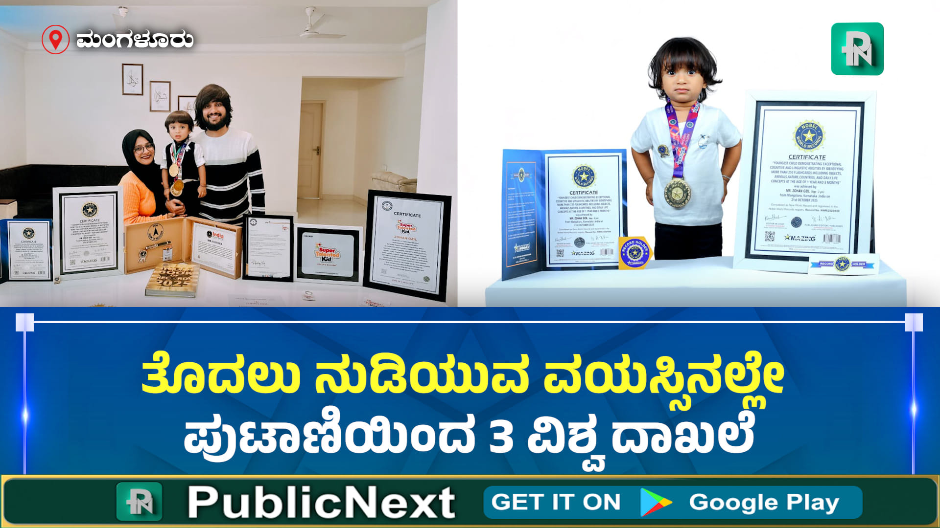 ಇಂಟರ್ನ್ಯಾಷನಲ್ ಬುಕ್ ಆಫ್ ರೆಕಾರ್ಡ್ಸ್ ವತಿಯಿಂದ “Super Talented Kid – One in a Million” ಮತ್ತು ವಿಶೇಷವಾಗಿ ಪ್ರತಿಷ್ಠಿತ ನೋಬೆಲ್ ವರ್ಲ್ಡ್ ರೆಕಾರ್ಡ್ ಅನ್ನು ಪಡೆದ ಝೋಹನ್ ಅಪರೂಪದ ಸಾಧನೆ ಮಾಡಿದ್ದಾರೆ. ಈ ಮಗುವಿನ ಈ ಸಾಧನೆ ಹೆತ್ತವರಿಗೆ ಮಾತ್ರವಲ್ಲದೆ ಮಂಗಳೂರಿಗೆ ಹೆಮ್ಮೆಯನ್ನು ತಂದಿದೆ. ಈ ಮಗು ಇನ್ನಷ್ಟು ಸಾಧನೆ ಮಾಡಿ ದಾಖಲೆ ಬರೆಯಲಿ ಎಂಬುದೇ ನಮ್ಮ ಆಶಯ.
