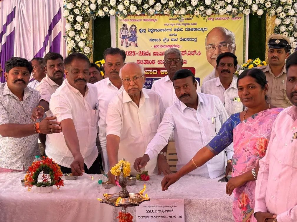 ತಾಲೂಕಿನ ದೇವಸಮುದ್ರ ಸರಕಾರಿ ಪ್ರೌಢಶಾಲಾ ಆವರಣದಲ್ಲಿ ಜಿಪಂ, ತಾಪಂ, ಶಾಲಾ ಶಿಕ್ಷಣ ಮತ್ತು | ಸಾಕ್ಷರತಾ ಇಲಾಖೆ, ಕ್ಷೇತ್ರ ಶಿಕ್ಷಣಾಧಿಕಾರಿಗಳ ಕಚೇರಿಗಳಿಂದ 2025-26 ನೇ ಸಾಲಿನ ಎಸ್ಎಸ್ಎಲ್ಸಿ ಫಲಿತಾಂಶ ಉತ್ತಮ ಪಡಿಸಲು ಬುಧವಾರ ಏರ್ಪಡಿಸಿದ್ದ ಸಂವಾದ ಕಾರ್ಯಕ್ರಮದಲ್ಲಿ ಮಾತನಾಡಿದರು.