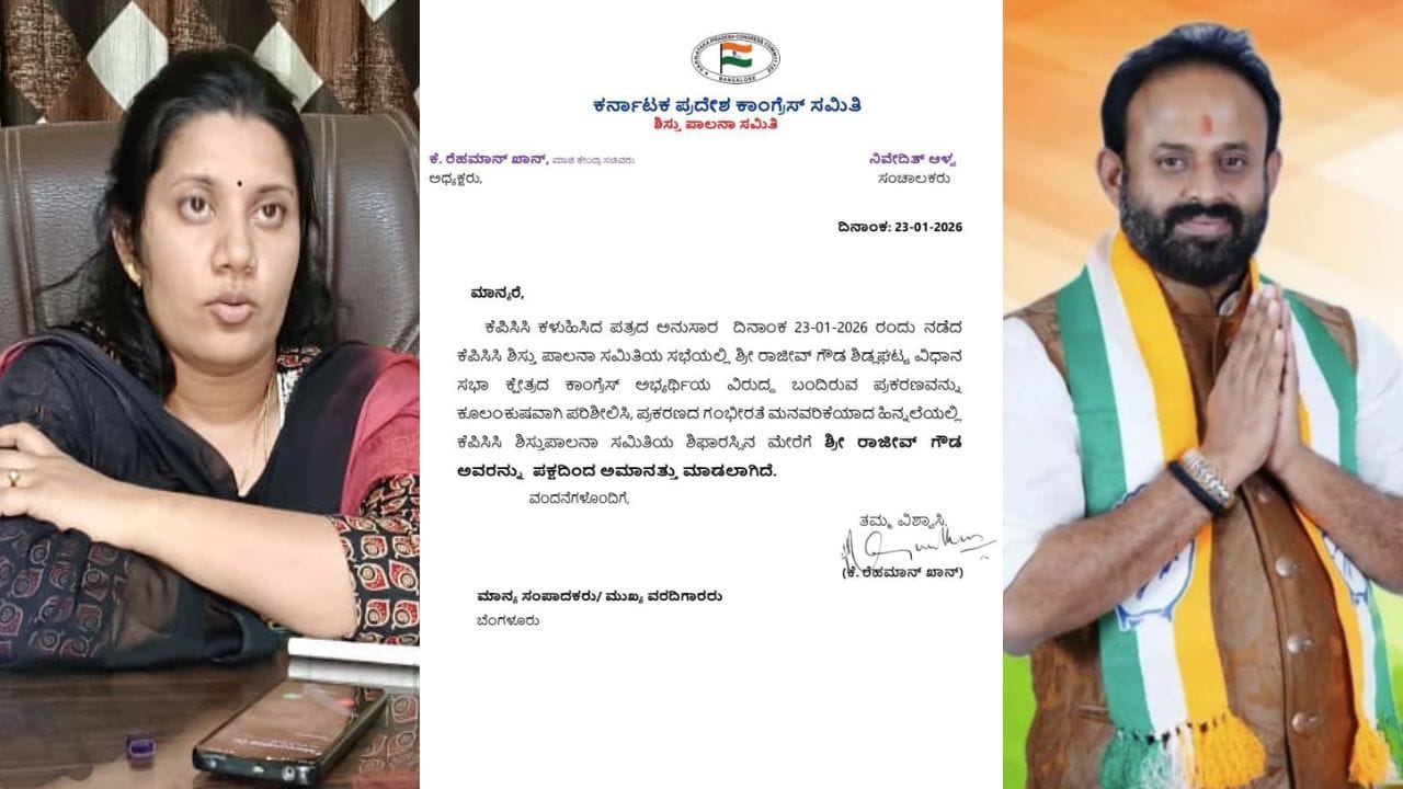ಈ ಹಿಂದೆ, ಸಚಿವ ಜಮೀರ್ ಅಹ್ಮದ್ ಖಾನ್ ಪುತ್ರ ಝೈದ್ ಖಾನ್ ನಟನೆಯ ‘ಕಲ್ಟ್’ ಸಿನಿಮಾ ಫ್ಲೆಕ್ಸ್ ತೆರವುಗೊಳಿಸಿದ್ದಕ್ಕೆ ಶಿಡ್ಲಘಟ್ಟ ನಗರಸಭೆ ಪೌರಾಯುಕ್ತೆಗೆ ಧಮ್ಕಿ ಹಾಕಿದ ಆರೋಪದ ಮೇಲೆ ರಾಜೀವ್ ಗೌಡ ಅವರಿಗೆ ಕೆಪಿಸಿಸಿ ನೋಟಿಸ್ ಜಾರಿ ಮಾಡಿತ್ತು. ಘಟನೆಯ ಬಗ್ಗೆ ವಿವರಣೆ ಕೇಳಿ ಕೆಪಿಸಿಸಿ ಕಾರ್ಯಾಧ್ಯಕ್ಷ ಜಿ.ಸಿ.ಚಂದ್ರಶೇಖರ್ ಈ ನೋಟಿಸ್ ನೀಡಿದ್ದರು. ಏಳು ದಿನಗಳ ಒಳಗೆ ನೋಟಿಸ್ಗೆ ಉತ್ತರ ನೀಡುವಂತೆ ಸೂಚಿಸಲಾಗಿತ್ತು. ತಪ್ಪಿದಲ್ಲಿ ಶಿಸ್ತು ಸಮಿತಿಯು ಮುಂದಿನ ಕ್ರಮ ಕೈಗೊಳ್ಳಲಿದೆ ಎಂದು ಎಚ್ಚರಿಸಲಾಗಿತ್ತು. ಇದೀಗ ಆ ಎಚ್ಚರಿಕೆಯಂತೆ ಕೆಪಿಸಿಸಿ ಶಿಸ್ತು ಸಮಿತಿಯು ರಾಜೀವ್ ಗೌಡ ಅವರನ್ನು ಪಕ್ಷದಿಂದ ಅಮಾನತು ಮಾಡಿ ಆದೇಶ ಹೊರಡಿಸಿದೆ.