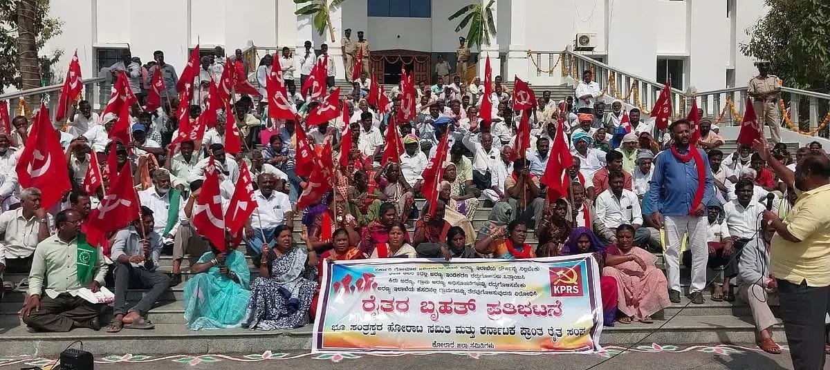 ಕೋಲಾರ - ಅರಣ್ಯ ಇಲಾಖೆಯ ಕಿರುಕುಳದಿಂದ ಭೂಮಿ ಕಳೆದುಕೊಂಡಿರುವ ಜಿಲ್ಲೆಯ ರೈತರ ಸಮಸ್ಯೆಗಳನ್ನು ಕೂಡಲೇ ಬಗೆಹರಿಸಬೇಕೆಂದು ಆಗ್ರಹಿಸಿ ಭೂ ಸಂತ್ರಸ್ತರ ಹೋರಾಟ ಸಮಿತಿ ಹಾಗೂ ಕೆಪಿಆರ್ಎಸ್ ನೇತೃತ್ವದಲ್ಲಿ ಜಿಲ್ಲಾಡಳಿತ ಭವನದ ಎದುರು ಬೃಹತ್ ಪ್ರತಿಭಟನೆ ನಡೆಯಿತು. ಅರಣ್ಯ ಇಲಾಖೆ ವಿರುದ್ಧ ಘೋಷಣೆ ಹಾಕಿ, ರೈತರ ಸಮಸ್ಯೆಗಳನ್ನು ಪರಿಹರಿಸುವಂತೆ ಒತ್ತಾಯ ಮಾಡಿದರು. ರೈತರ ಜಮೀನಿಗೆ ಅತಿಕ್ರಮ ಪ್ರವೇಶ ಮಾಡಬಾರದೆಂದು ಸಭೆಯಲ್ಲಿ ನಿರ್ಣಯ ಕೈಗೊಂಡಿದ್ದರೂ ಪದೇಪದೇ ತೊಂದರೆ ಮಾಡಿ ಪ್ರಕರಣ ದಾಖಲಿಸುತ್ತಿದ್ದಾರೆ ಎಂದು ಆರೋಪಿಸಿದರು.