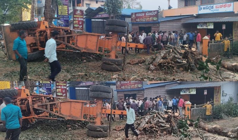 ಶಿವಮಂದಿರದ ಸಮೀಪದ ರಸ್ತೆ ಬದಿಯಲ್ಲಿ ಅಪಾಯಕಾರಿಯಾಗಿ ನಿಂತಿದ್ದ ದೊಡ್ಡ ಮರವನ್ನು ತೆರವುಗೊಳಿಸುವ ಉದ್ದೇಶದಿಂದ ಕ್ರೇನ್ ಮೂಲಕ ಕಟಾವು ಕಾರ್ಯ ನಡೆಸಲಾಗುತ್ತಿತ್ತು.