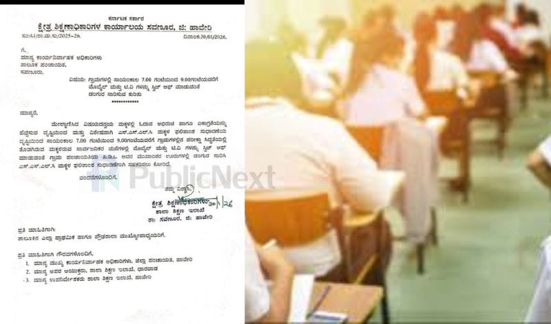ಸವಣೂರು ತಾಲೂಕಿನ ಎಲ್ಲಾ ಗ್ರಾಮಗಳಲ್ಲಿ ಸಂಜೆ 7 ರಿಂದ 9 ಗಂಟೆಯವರೆಗೆ ಮನೆಯಲ್ಲಿನ ಮೊಬೈಲ್ ಮತ್ತು ಟಿವಿ ಗಳನ್ನ ಸ್ವಿಚ್ ಆಫ್ ಮಾಡುವಂತೆ ಮನವಿ ಮಾಡಿದ್ದಾರೆ. ಸವಣೂರು ತಾಲೂಕು ಪಂಚಾಯತ್ ಟಿಇಓಗೆ ಬಿಇಓ m f ಬಾರ್ಕಿ ಮನವಿ ಮಾಡಿದ್ದಾರೆ.ಗ್ರಾಮ ಪಂಚಾಯಿತಿ ಪಿಡಿಓಗಳು ಊರುಗಳಲ್ಲಿ ಡಂಗುರ ಸಾರಿಸಿ SSLC ಮಕ್ಕಳ ಫಲಿತಾಂಶ ಸುಧಾರಣೆ ಸಹಕರಿಸಲು ಬಿಇಓ ಮನವಿ ಮಾಡಿದ್ದಾರೆ.