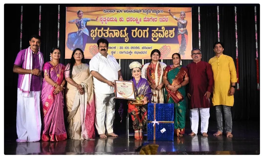 ಭಟ್ಕಳ: ನಗರದ ಝೇಂಕಾರ್ ಆರ್ಟ್ ಅಸೋಸಿಯೇಷನ್ನ ವಿದ್ಯಾರ್ಥಿನಿ, ನೃತ್ಯ ವಿದುಷಿ ಧನಲಕ್ಷ್ಮೀ ಮೊಗೇರ ಅವರ ಭರತನಾಟ್ಯ ರಂಗಪ್ರವೇಶ ಕಾರ್ಯಕ್ರಮವು ನಗರದ ನಾಗಯಕ್ಷೆ ಧರ್ಮಾರ್ಥ ಸಭಾಭವನದಲ್ಲಿ ಅದ್ದೂರಿಯಾಗಿ ನೆರವೇರಿತು.