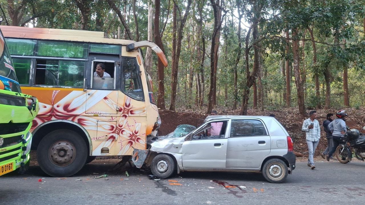 ಬಸ್ನ ಹಾಗೂ ಕಾರಿನ ಮುಂಭಾಗ ಸಂಪೂರ್ಣ ಜಖಂಗೊಂಡಿದ್ದು ಕಾರು ಬಲ ಭಾಗಕ್ಕೆ ಹೋಗಿ ಬಸ್ಗೆ ಡಿಕ್ಕಿ ಹೊಡೆದಿದೆ ಎಂದು ಸ್ಥಳೀಯರು ತಿಳಿಸಿದ್ದಾರೆ.