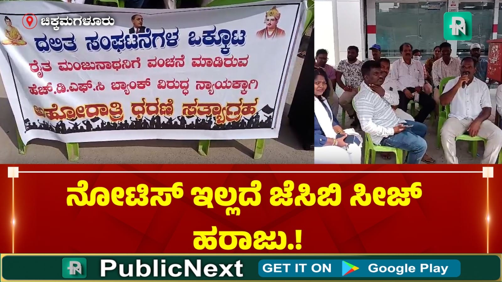 ಚಿಕ್ಕಮಗಳೂರು: ಸಾಲಗಾರನಿಗೆ ವಂಚನೆ ಮಾಡಿದೆ ಎಂದು ಆರೋಪಿಸಿ ಚಿಕ್ಕಮಗಳೂರಿನ ಎಂ.ಜಿ. ರಸ್ತೆಯಲ್ಲಿರುವ ಎಚ್ಡಿಎಫ್ಸಿ ಬ್ಯಾಂಕ್ ಎದುರು ದಲಿತಪರ ಸಂಘಟನೆಗಳು ಅನಿರ್ದಿಷ್ಟಾವಧಿ ಧರಣಿ ಆರಂಭಿಸಿವೆ. ಗೌಡನಹಳ್ಳಿಯ ಮಂಜುನಾಥ್ ಎಂಬ ಯುವಕನಿಗೆ ಬ್ಯಾಂಕ್ನಿಂದ ಅನ್ಯಾಯವಾಗಿದೆ ಎಂಬ ಗಂಭೀರ ಆರೋಪ ಕೇಳಿಬಂದಿದ್ದು, ಈ ಹಿನ್ನೆಲೆಯಲ್ಲಿ ಸಂಘಟನೆಗಳು ಪ್ರತಿಭಟನೆಗೆ ಇಳಿದಿವೆ.