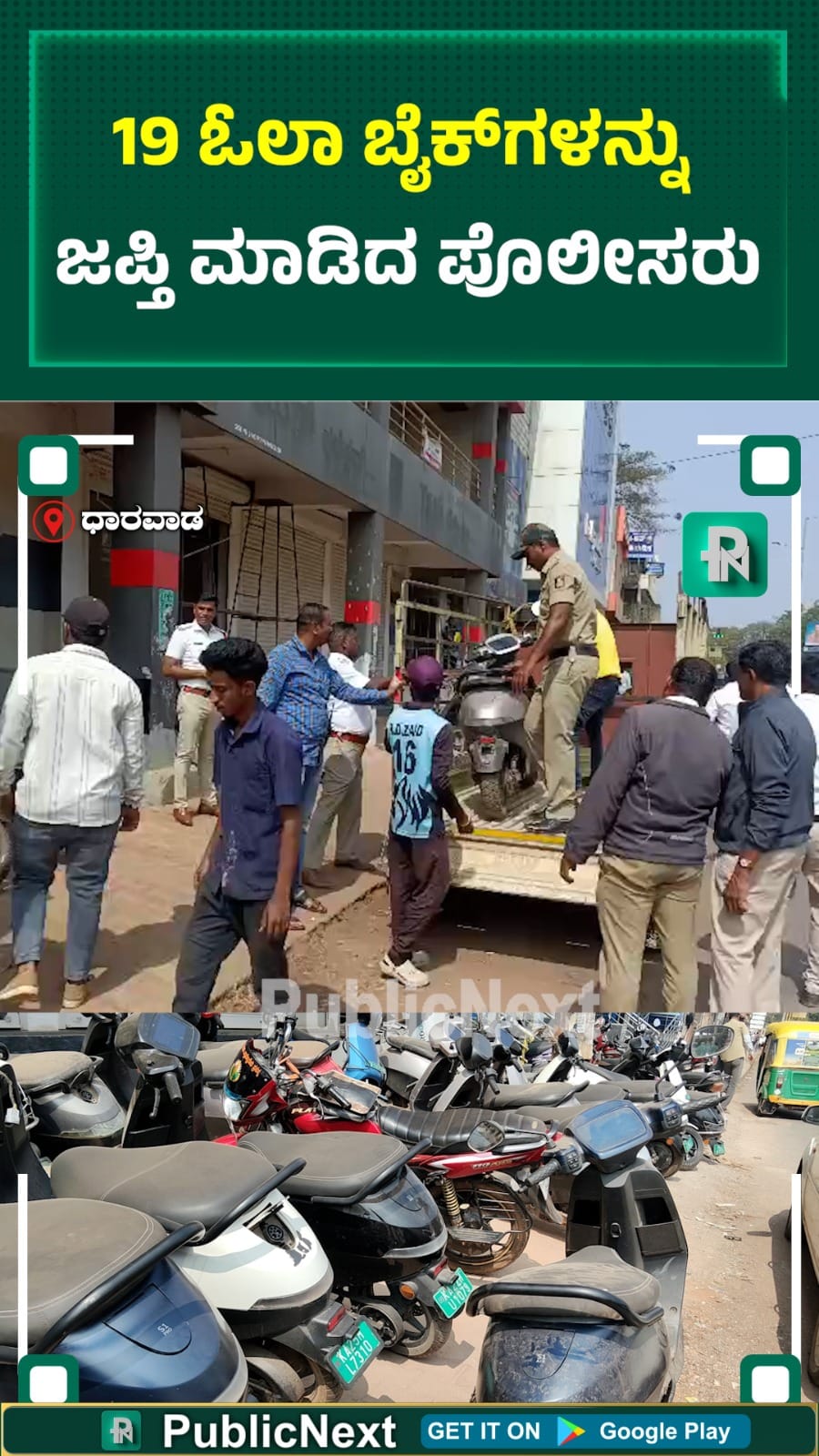 ಧಾರವಾಡದ ಜ್ಯುಬಿಲಿ ವೃತ್ತದ ಬಳಿ ಓಲಾ ಶೋ ರೂಮ್ ಇದೆ. ಇಲ್ಲಿಗೆ ದುರಸ್ತಿಯಲ್ಲಿರುವ ಬೈಕ್ಗಳನ್ನು ತರಲಾಗುತ್ತದೆ. ದುರಸ್ತಿಗೊಳಗಾದ ಬೈಕ್ಗಳನ್ನು ಶೋ ರೂಮ್ನವರು ಫುಟ್ಪಾತ್ ಮೇಲೆಯೇ ನಿಲ್ಲಿಸಿದ್ದರು. ಸಂಚಾರ ಠಾಣೆಯವರು ಫುಟ್ಪಾತ್ ಮೇಲೆ ಬೈಕ್ ನಿಲ್ಲಿಸಬೇಡಿ ಎಂದು ಶೋ ರೂಮ್ನವರಿಗೆ ಅನೇಕ ಸಾರಿ ಹೇಳಿದ್ದರೂ ಅವರು ಬೈಕ್ಗಳನ್ನು ತೆರವುಗೊಳಿಸಿರಲಿಲ್ಲ.