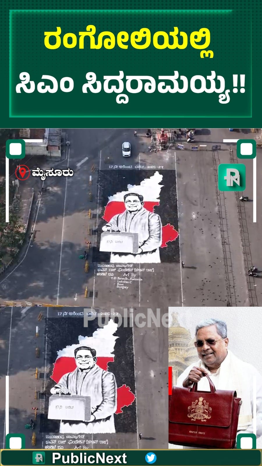 ಮೈಸೂರು: ಸಿಎಂ ಸಿದ್ದರಾಮಯ್ಯ ಅವರು ನಾಳೆ 17ನೇ ಬಾರಿಗೆ ದಾಖಲೆಯ ರಾಜ್ಯ ಮುಂಗಡ ಪತ್ರವನ್ನು ಮಂಡನೆ ಮಾಡಲಿದ್ದು, ಮೈಸೂರಿನ ಸಿಎಂ ಅಭಿಮಾನಿಯೋರ್ವ ರಸ್ತೆಯೊಂದರ ನಡುವೆ ಸಿಎಂ ಅವರ ಬೃಹದಾಕಾರದ ರಂಗೋಲಿಯನ್ನು ಬಿಡಿಸಿರೋದು ಎಲ್ಲರ ಕಣ್ಮನ ಸೆಳೆಯುತ್ತಿದೆ!