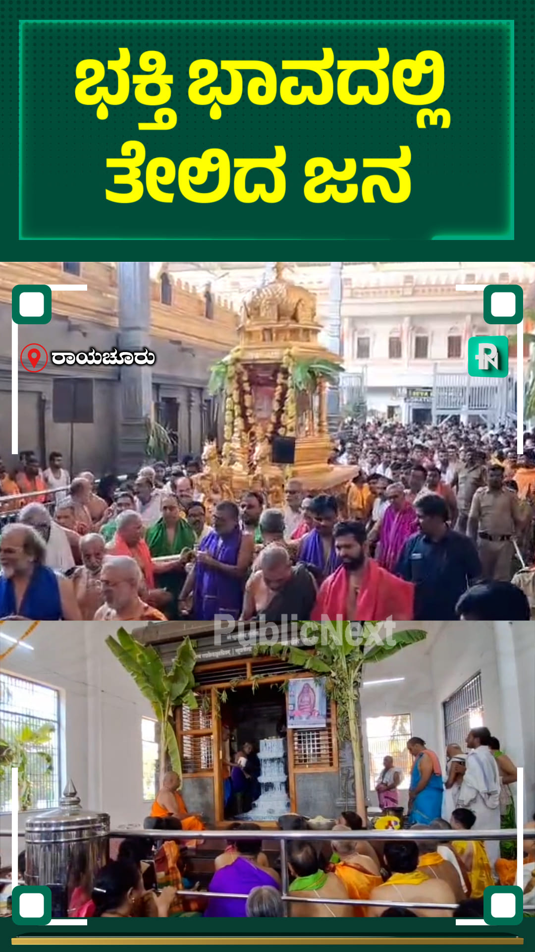 ರಾಯಚೂರು: ತುಂಗಭದ್ರಾ ತಟದಲ್ಲಿರುವ ಮಂತ್ರಾಲಯದ ರಾಯರ ಮಠದಲ್ಲಿಂದು ಶ್ರೀ ಸುಯತೀಂದ್ರ ತೀರ್ಥರ ಮಧ್ಯಾರಾಧನೆ ಅತ್ಯಂತ ವಿಜೃಂಭಣೆಯಿಂದ ನೆರವೇರಿತು. ಈ ಶುಭ ಸಂದರ್ಭದಲ್ಲಿ ಶ್ರೀ ಸುಯತೀಂದ್ರ ತೀರ್ಥರ ಮೂಲ ಬೃಂದಾವನಕ್ಕೆ ಪ.ಪೂ.ಶ್ರೀ ಸುಭುದೇಂದ್ರ ತೀರ್ಥ ಸ್ವಾಮೀಜಿಯವರ ದಿವ್ಯ ಸಾನ್ನಿಧ್ಯದಲ್ಲಿ ಮಹಾ ಪಂಚಾಮೃತಾಭಿಷೇಕ ನೆರವೇರಿತು. ನಂತರ ಶ್ರೀ ಸುಯತೀಂದ್ರ ತೀರ್ಥರ ರಥೋತ್ಸವವನ್ನು ಪು.ಪೂ.ಶ್ರೀ ಸುಭುದೇಂದ್ರ ತೀರ್ಥ ಶ್ರೀಗಳು ಉದ್ಘಾಟಿಸಿದರು, ಈ ವೇಳೆ ಅಪಾರ ಸಂಖ್ಯೆಯ ಭಕ್ತರು, ಶಿಷ್ಯರು, ಭಜನಾ ಮಂಡಳಿಯ ಸದಸ್ಯರು ಶ್ರದ್ಧಾ ಭಕ್ತಿಯಿಂದ ಪಾಲ್ಗೊಂಡು ಯತಿಗಳ ಕೃಪೆಗೆ ಪಾತ್ರರಾದರು