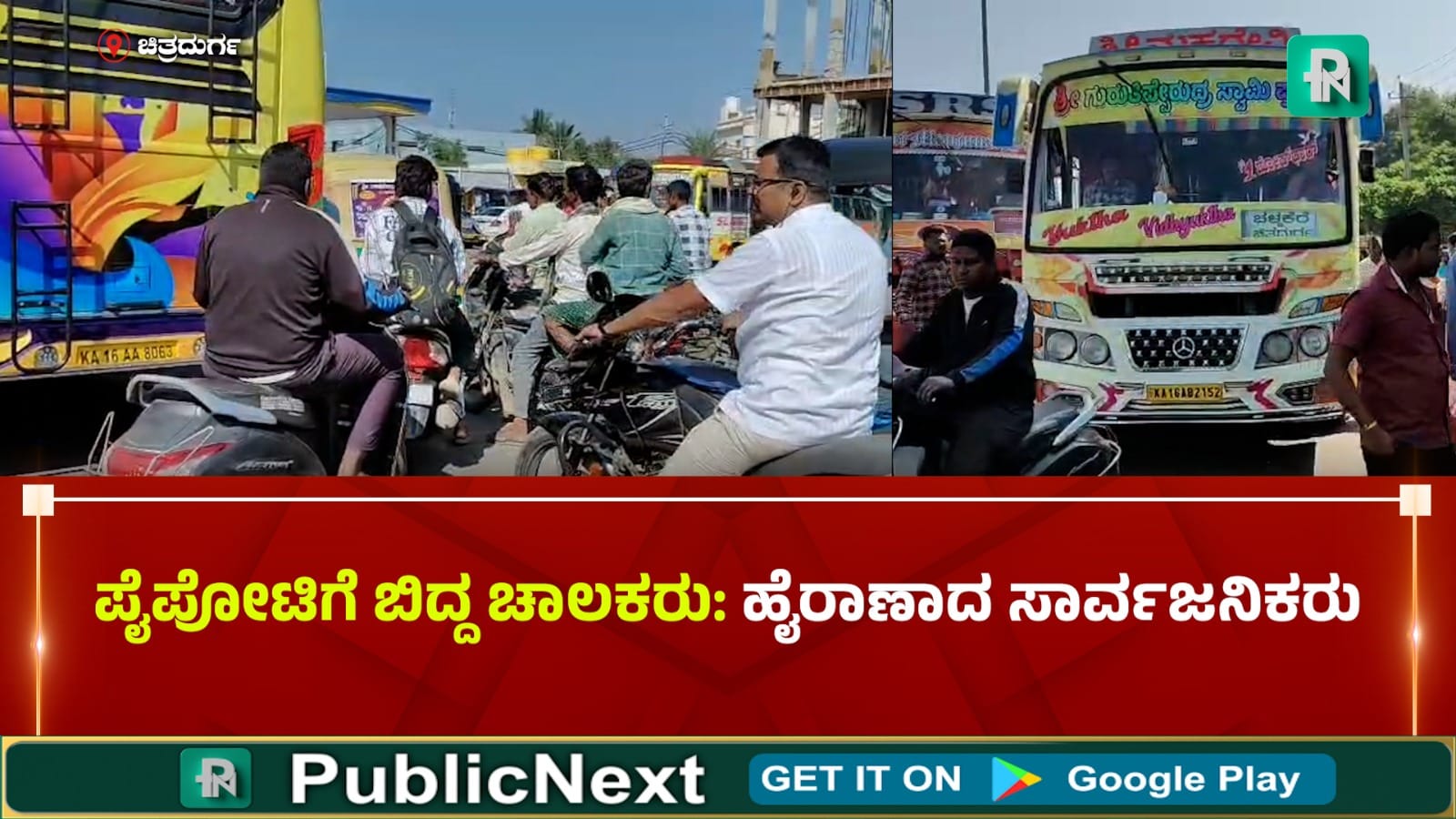 ಚಳ್ಳಕೆರೆ: ನಗರದ ಮಧ್ಯಭಾಗದಲ್ಲಿ ಖಾಸಗಿ ಬಸ್ಸುಗಳ ಚಾಲಕರು ಮತ್ತು ಕಂಡಕ್ಟರ್ಗಳ ನಡುವಿನ ಪೈಪೋಟಿ ಸಾರ್ವಜನಿಕರಿಗೆ ಭಾರೀ ತೊಂದರೆಯಾಗಿ ಪರಿಣಮಿಸಿದೆ. ಬುಧವಾರ ಬೆಳಗ್ಗೆ ಸುಮಾರು 10 ಗಂಟೆ ವೇಳೆಗೆ ಬಸ್ಸುಗಳನ್ನು ರಸ್ತೆ ಮಧ್ಯದಲ್ಲೇ ನಿಲ್ಲಿಸಿಕೊಂಡ ಪರಿಣಾಮ ಟ್ರಾಫಿಕ್ ಜಾಮ್ ಉಂಟಾಗಿ ವಿದ್ಯಾರ್ಥಿಗಳು ಹಾಗೂ ಪ್ರಯಾಣಿಕರು ಸಾಕಷ್ಟು ಪರದಾಟ ಅನುಭವಿಸಿದ ಘಟನೆ ನಡೆದಿದೆ.