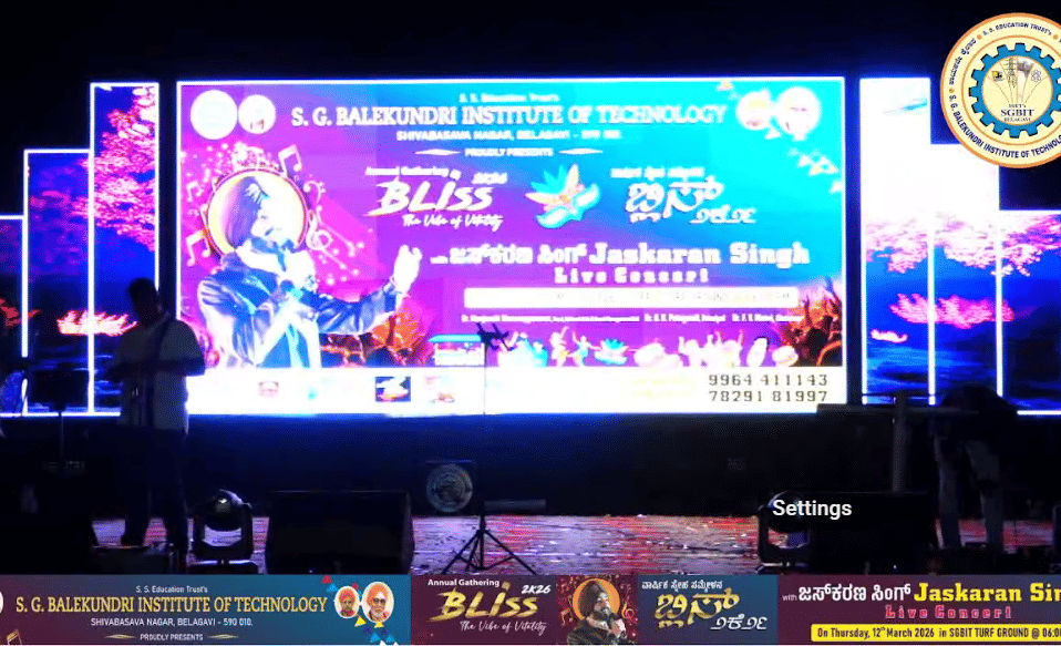 ಬೆಳಗಾವಿಯ ಎಸ್.ಜಿ. ಬಾಳೇಕುಂದ್ರಿ ತಾಂತ್ರಿಕ ಕಾಲೇಜಿನಲ್ಲಿ ವಾರ್ಷಿಕೋತ್ಸವ ಕಾರ್ಯಕ್ರಮವು ಅದ್ದೂರಿಯಾಗಿ ಜರುಗುತ್ತಿದೆ. ಈ ವಿಶೇಷ ಸಮಾರಂಭದ ನೇರ ಪ್ರಸಾರವನ್ನು ವೀಕ್ಷಿಸಲು ಲಿಂಕ್ ಇಲ್ಲಿದೆ.