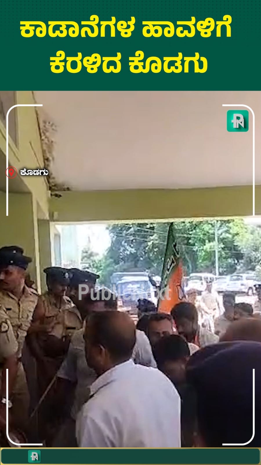 ಕಾಡಾನೆ ದಾಳಿಗಳನ್ನು ತಡೆಯುವಲ್ಲಿ ಅರಣ್ಯ ಇಲಾಖೆಯ ವೈಫಲ್ಯ ಖಂಡಿಸಿ, ಕೊಡಗು ಜಿಲ್ಲಾ ಬಿಜೆಪಿ ಕಾರ್ಯಕರ್ತರು ಮಡಿಕೇರಿಯಲ್ಲಿರುವ ಅರಣ್ಯ ಭವನಕ್ಕೆ ಮುತ್ತಿಗೆ ಹಾಕಲು ಯತ್ನಿಸಿದರು. ಮುಖ್ಯ ಅರಣ್ಯ ಸಂರಕ್ಷಣಾಧಿಕಾರಿ (CCF) ಕಚೇರಿಗೆ ನುಗ್ಗಲು ಮುಂದಾದ ಪ್ರತಿಭಟನಾಕಾರರನ್ನು ಪೊಲೀಸರು ಅರಣ್ಯ ಭವನದ ಮುಂಭಾಗದಲ್ಲೇ ತಡೆದರು. ಈ ವೇಳೆ ಪೊಲೀಸರು ಮತ್ತು ಕಾರ್ಯಕರ್ತರ ನಡುವೆ ಕೆಲಕಾಲ ತೀವ್ರ ವಾಗ್ವಾದ ನಡೆದು, ಹೈಡ್ರಾಮಾ ಸೃಷ್ಟಿಯಾಯಿತು. ಕೂಡಲೇ CCF ಸ್ಥಳಕ್ಕಾಗಮಿಸಿ ಸಮಸ್ಯೆ ಆಲಿಸುವಂತೆ ಪ್ರತಿಭಟನಾಕಾರರು ಒತ್ತಾಯಿಸಿದರು.