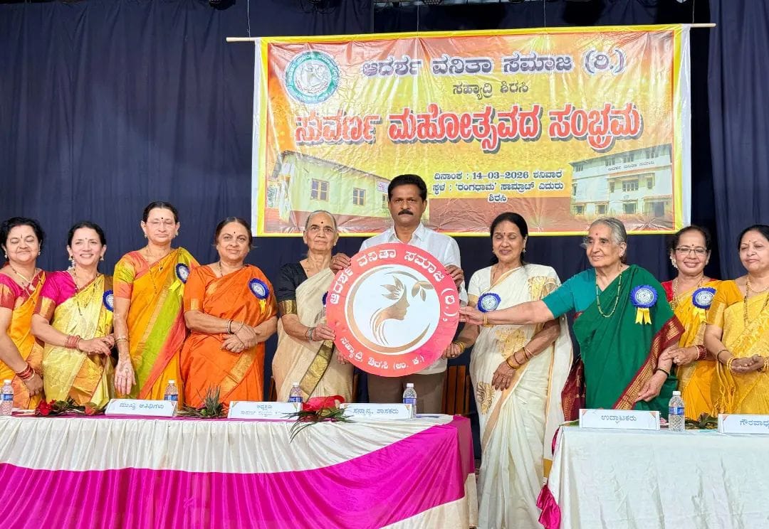 ಶಿರಸಿ: ಸಮಾಜದ ಪ್ರಗತಿಯಲ್ಲಿ ಮಹಿಳೆಯರ ಪಾತ್ರ ಅನನ್ಯ. ನಗರದ ರಂಗಧಾಮದಲ್ಲಿ ಶನಿವಾರ ಆಯೋಜಿಸಲಾಗಿದ್ದ 'ಆದರ್ಶ ವನಿತಾ ಸಮಾಜ (ರಿ) ಸಹ್ಯಾದ್ರಿ' ಸಂಸ್ಥೆಯ ಸುವರ್ಣ ಮಹೋತ್ಸವ ಕಾರ್ಯಕ್ರಮದ 'ಲೋಗೋ ಬಿಡುಗಡೆಗೊಳಿಸಿ ಶಾಸಕ ಭೀಮಣ್ಣ ಟಿ. ನಾಯ್ಕ ಅವರು ಮಾತನಾಡಿದರು.