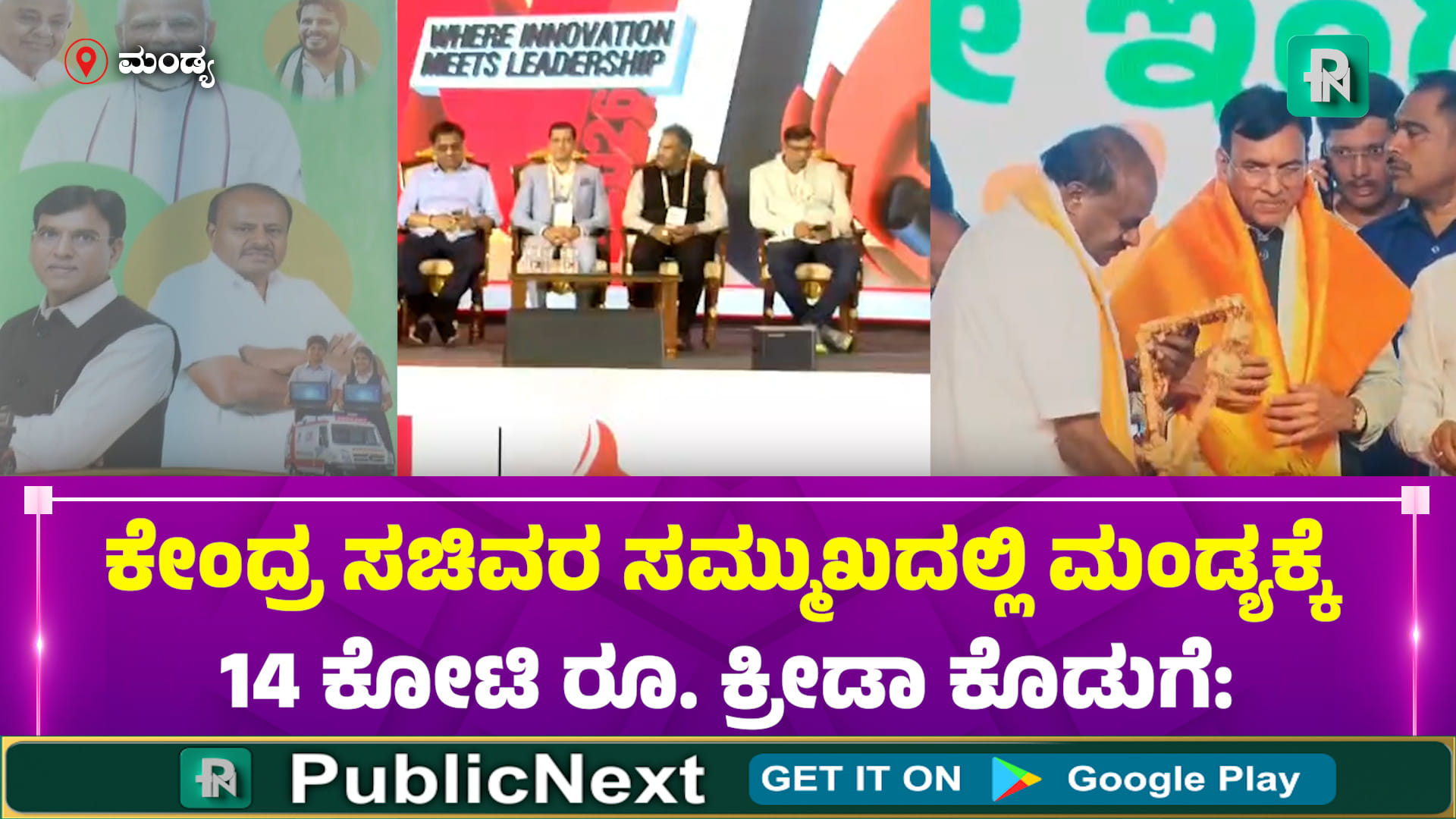 ಮಂಡ್ಯದ ವಿ.ಸಿ. ಫಾರಂನಲ್ಲಿ ಕೇಂದ್ರ ಸಚಿವರಾದ ಹೆಚ್.ಡಿ. ಕುಮಾರಸ್ವಾಮಿ ಮತ್ತು ಡಾ. ಮನ್ಸುಖ್ ಮಾಂಡವಿಯಾ ಅವರು ಖೇಲೋ ಇಂಡಿಯಾ ಕ್ರೀಡಾಂಗಣಕ್ಕೆ ಶಂಕುಸ್ಥಾಪನೆ ನೆರವೇರಿಸಿದರು. ಕೇಂದ್ರ ಉಕ್ಕು ಮತ್ತು ಬೃಹತ್ ಕೈಗಾರಿಕಾ ಸಚಿವ ಹೆಚ್.ಡಿ. ಕುಮಾರಸ್ವಾಮಿ ಹಾಗೂ ಕೇಂದ್ರ ಕ್ರೀಡಾ ಸಚಿವ ಡಾ. ಮನ್ಸುಖ್ ಮಾಂಡವಿಯಾ ಅವರು ವಿ.ಸಿ. ಫಾರಂನ ಒಂದು ಎಕರೆ ಜಾಗದಲ್ಲಿ 14 ಕೋಟಿ ರೂ. ವೆಚ್ಚದಲ್ಲಿ ನಿರ್ಮಾಣವಾಗಲಿರುವ ಖೇಲೋ ಇಂಡಿಯಾ ಕ್ರೀಡಾಂಗಣಕ್ಕೆ ಶಂಕುಸ್ಥಾಪನೆ ನೆರವೇರಿಸಿದರು. ಸಚಿವರು ವೇದಿಕೆಗೆ ಆಗಮಿಸುವ ಮುನ್ನವೇ ಈ ಮಹತ್ವದ ಶಂಕುಸ್ಥಾಪನೆ ಕಾರ್ಯಕ್ರಮ ನಡೆಯಿತು.