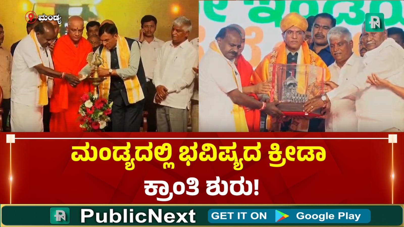 ಮಂಡ್ಯದ ವಿ.ಸಿ. ಫಾರಂನಲ್ಲಿ ಒಂದು ಎಕರೆ ಜಾಗದಲ್ಲಿ 14 ಕೋಟಿ ರೂಪಾಯಿ ವೆಚ್ಚದಲ್ಲಿ 'ಖೇಲೋ ಇಂಡಿಯಾ' ಯೋಜನೆಯಡಿ ಸುಸಜ್ಜಿತ ಕ್ರೀಡಾಂಗಣ ನಿರ್ಮಾಣವಾಗಲಿದೆ. ಕಾರ್ಯಕ್ರಮದ ವೇದಿಕೆಗೆ ಆಗಮಿಸಿದ ಕೇಂದ್ರ ಸಚಿವ ಹೆಚ್.ಡಿ. ಕುಮಾರಸ್ವಾಮಿ ಹಾಗೂ ಕೇಂದ್ರ ಕ್ರೀಡಾ ಸಚಿವ ಡಾ. ಮನ್ಸುಖ್ ಮಾಂಡವಿಯಾ ಅವರು ಕ್ರೀಡಾಂಗಣಕ್ಕೆ ಶಂಕುಸ್ಥಾಪನೆ ನೆರವೇರಿಸಿದರು.