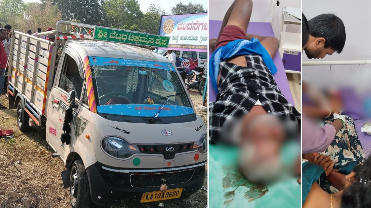 ಗುಂಡ್ಲುಪೇಟೆ ತಾಲೂಕಿನ ಮಲ್ಲಯ್ಯಪುರ ಗ್ರಾಮದ ಸುಮಾರು 20ಕ್ಕೂ ಹೆಚ್ಚು ಮಂದಿ ಕೊಳ್ಳೇಗಾಲದ ಚಿಕ್ಕಲ್ಲೂರು ದೇವಸ್ಥಾನಕ್ಕೆ ಪೂಜೆಗೆ ತೆರಳುತ್ತಿದ್ದ ವೇಳೆ ಬೈಕ್ ಅಡ್ಡ ಬಂದ ಕಾರಣ ಚಾಲಕ ನಿಯಂತ್ರಣ ಕಳೆದುಕೊಂಡು ವಾಹನ ಪಲ್ಟಿಯಾಗಿದೆ.