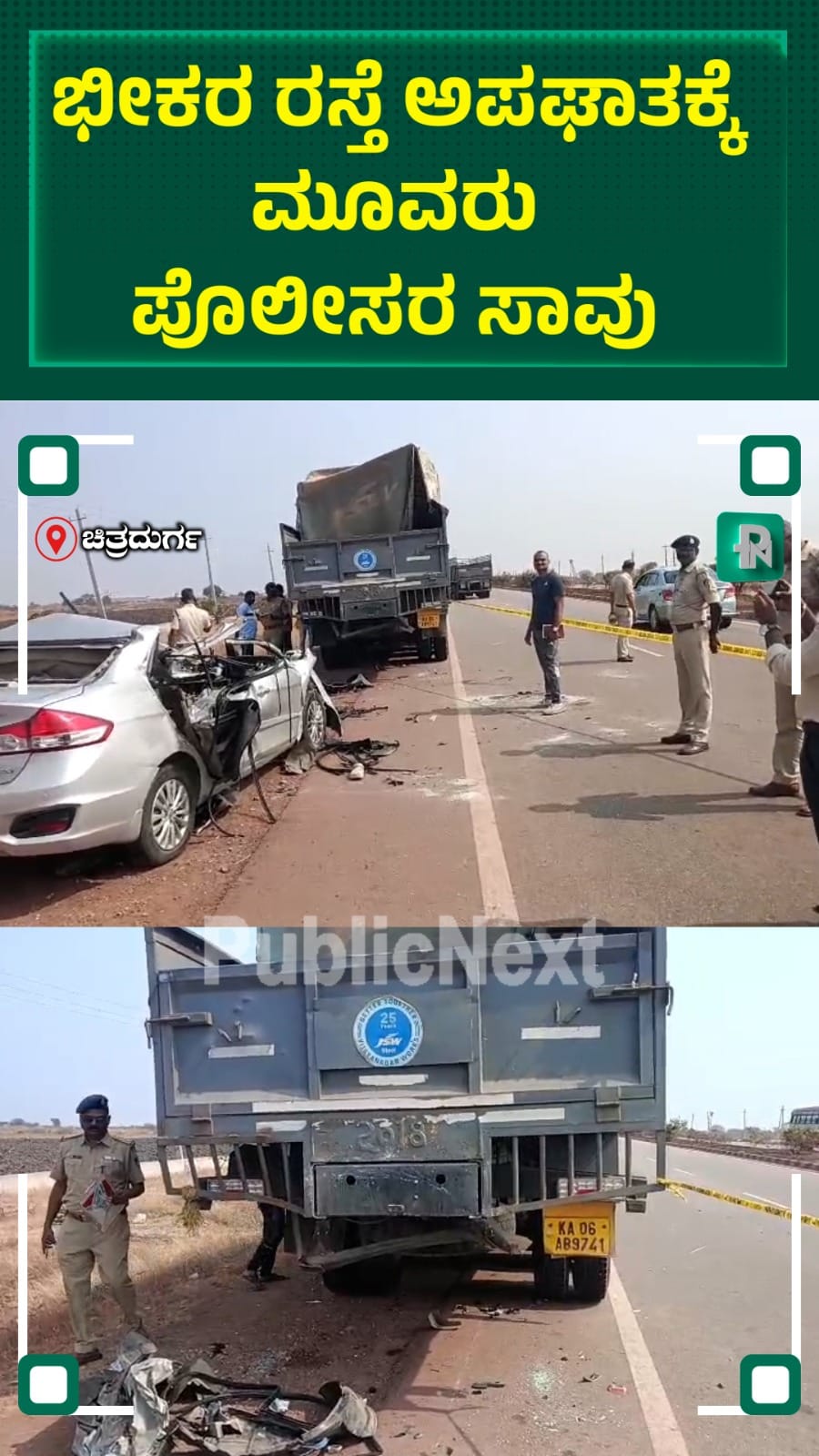ಬೆಂಗಳೂರಿನಿಂದ ಬಳ್ಳಾರಿಗೆ ತೆರಳುತ್ತಿದ್ದ ಕಾರು ಲಾರಿಗೆ ಡಿಕ್ಕಿ ಹೊಡೆದ ಪರಿಣಾಮ ಕಾರು ಸುಮಾರು 300 ಮೀಟರ್ ದೂರದವರೆಗೆ ಎಳೆಯಲ್ಪಟ್ಟಿತು. ಪೊಲೀಸ್ ಅಧಿಕಾರಿಗಳಾದ ಮಂಜುನಾಥ, ಅಮರೇಶ್, ಸಚಿನ್, ಸಾವನ್ನಪ್ಪಿದ್ದಾರೆ. ಹಾಗೂ ಈರೇಶ್, ಲಕ್ಷ್ಮಣ್ ಎಂ. ಡಿ ಇಬ್ಬರು ಗಾಯಗೊಂಡಿದ್ದು ಜಿಲ್ಲಾ ಆಸ್ಪತ್ರೆಗೆ ದಾಖಲಿಸಲಾಗಿದೆ ಎಂದು ಮಾಹಿತಿ ನೀಡಿದ್ದಾರೆ.