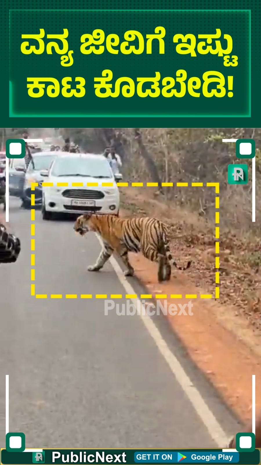 VIDEO : ಅರಣ್ಯ ಜೀವಿಗೆ ಮಾನವನಿಂದಲೇ ಅಪಾಯ? ಎಂಬಂತಾಗಿದೆ. ಸ್ವತಂತ್ರವಾಗಿ ಓಡಾಡುತ್ತಾ ತನ್ನ ಪಾಡಿಗೆ ರಸ್ತೆ ದಾಡಿ ಕಾಡು ಸೇರೋ ಹುಲಿಗೆ ಅನೇಕ ದಾರಿಹೋಕರು ಕೆಲ ಪ್ರವಾಸಿಗರು ಅನಗತ್ಯ ಕೂಗಾಡಿ ತಮ್ಮ ವಿಡಿಯೋ ಗೀಳಿಗೆ ಹುಚ್ಚಾಟ ತೋರಿದ್ದಾರೆ.