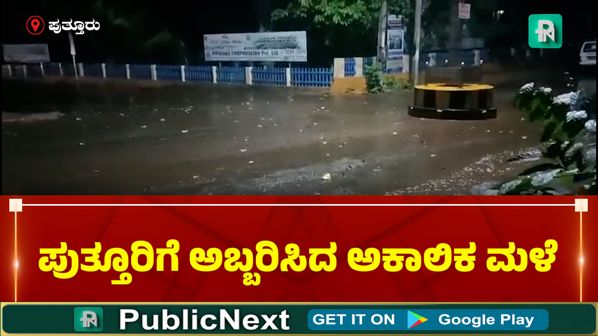 ಪುತ್ತೂರು: ಬಿಸಿಲ ಬೇಗೆಯಿಂದ ಬಳಲುತ್ತಿದ್ದ ಪುತ್ತೂರಿನಾದ್ಯಂತ ಗುಡುಗು ಸಹಿತ ಭಾರೀ ಮಳೆ-ಗಾಳಿ ಬೀಸಿದೆ.