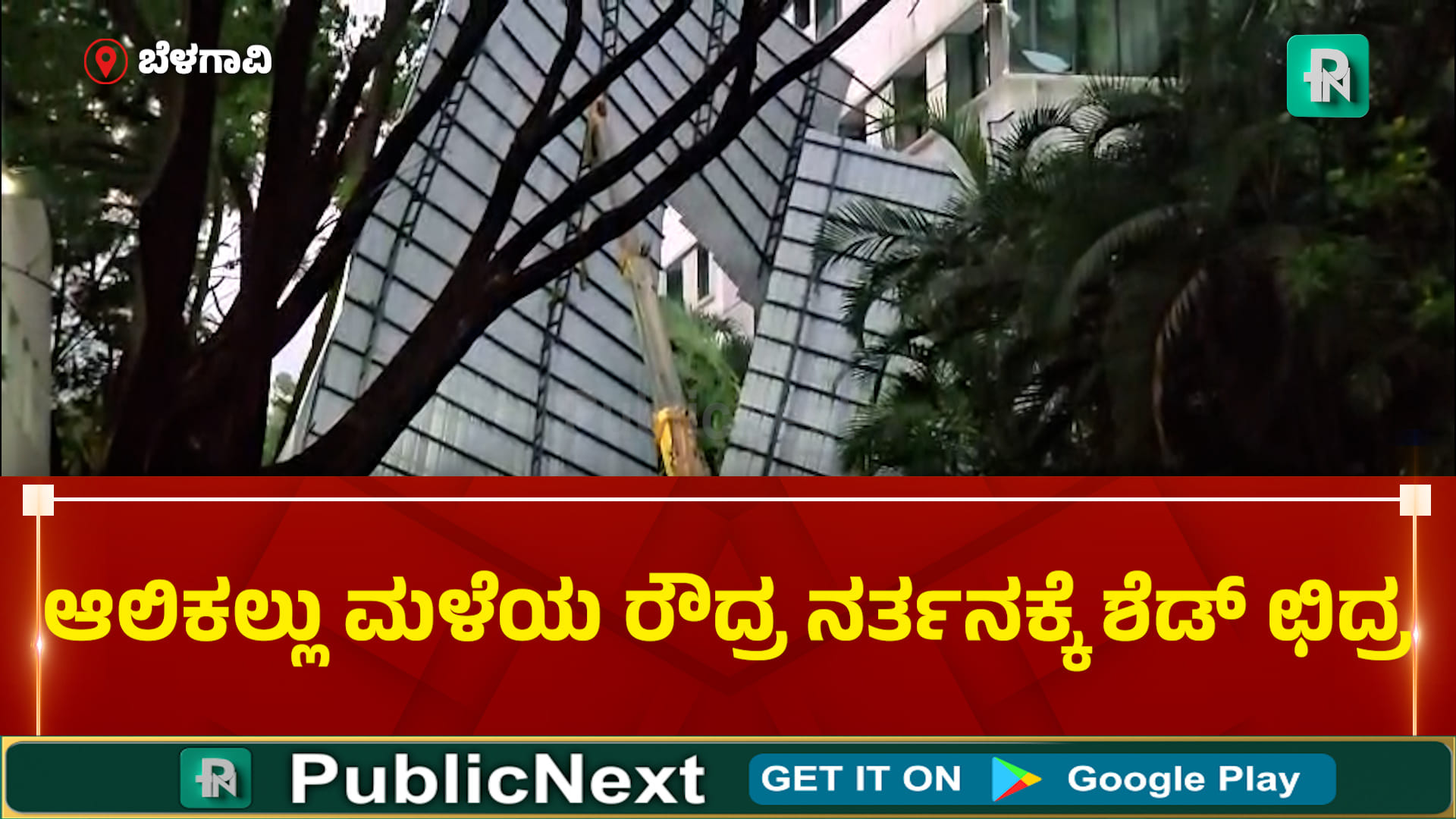 ಬೆಳಗಾವಿ: ಬೆಳಗಾವಿ ನಗರದಲ್ಲಿ ಬಿರುಗಾಳಿ ಮಿಶ್ರಿತ ಆಲಿಕಲ್ಲು ಮಳೆಗೆ ಬೃಹತ್ ತಗಡಿನ ಶೆಡ್ಡು ನೆಲಕ್ಕೆ ಉರಳಿದ್ದು, ಸ್ವಲ್ಪದರಲ್ಲೇ ದೊಡ್ಡ ಅನಾಹುತ ತಪ್ಪಿದೆ.