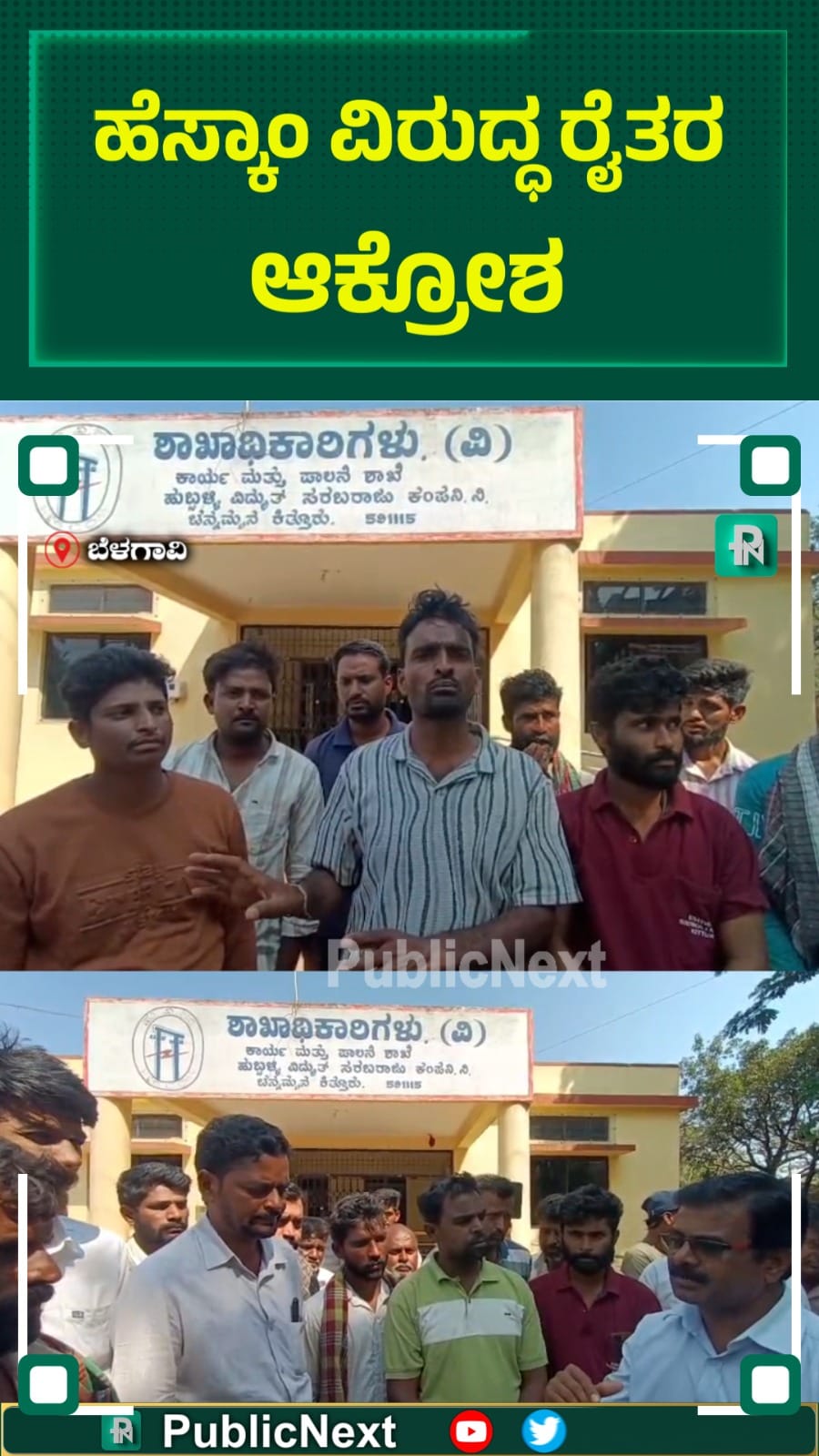 ಬೆಳಗಾವಿ: ಬೆಳಗಾವಿ ಜಿಲ್ಲೆಯ ಕಿತ್ತೂರು ತಾಲ್ಲೂಕಿನ ದೇಮಟ್ಟಿ ಗ್ರಾಮದ ರೈತರು ಇಂದು ಹೆಸ್ಕಾಂ ಕಚೇರಿಗೆ ಮುತ್ತಿಗೆ ಹಾಕಿ ತೀವ್ರ ಆಕ್ರೋಶ ವ್ಯಕ್ತಪಡಿಸಿದರು.