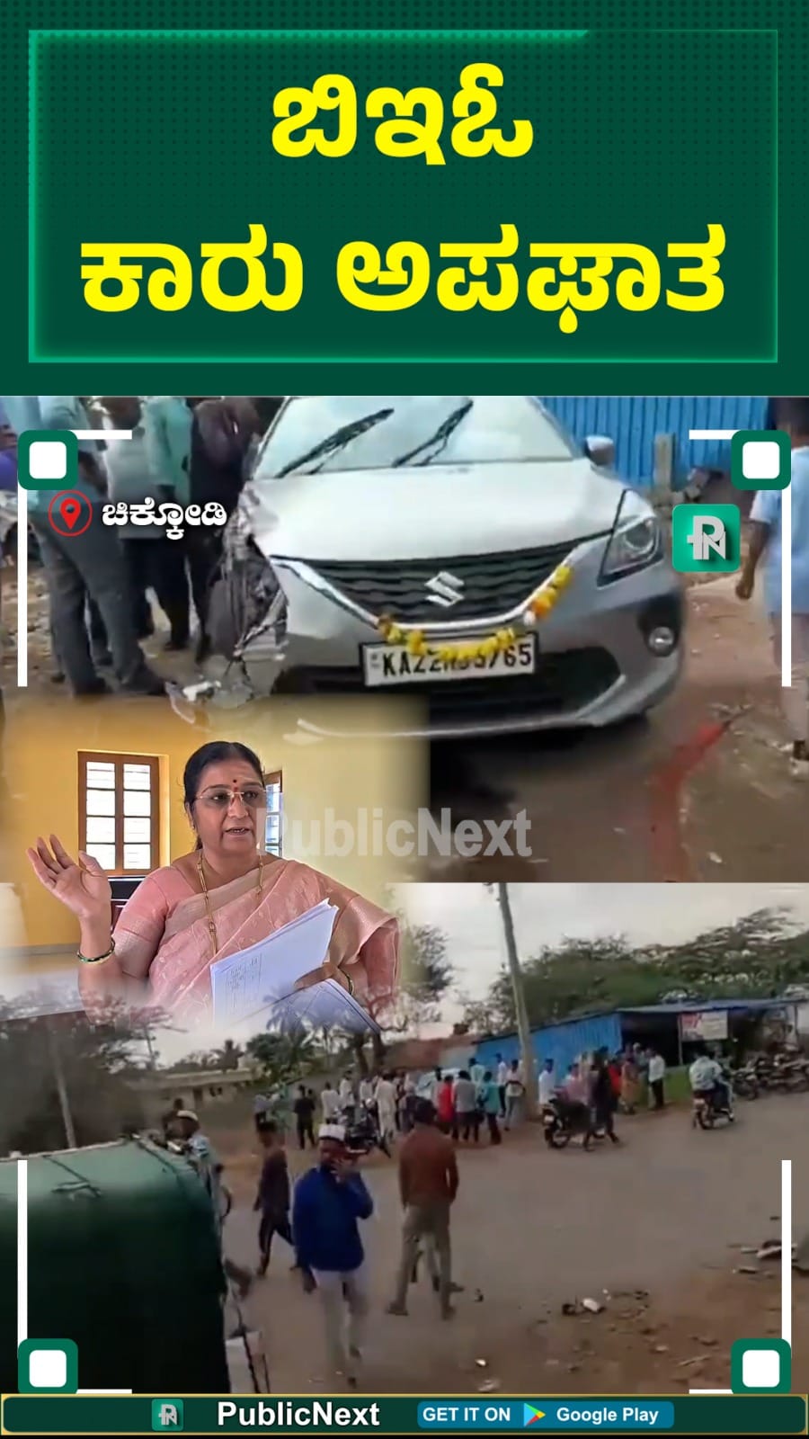 ಹುಕ್ಕೇರಿ ಹಾಗೂ ಚಿಕ್ಕೋಡಿ ತಾಲೂಕುಗಳ ಬಿಇಓ ಆಗಿರುವ ಪ್ರಭಾವತಿ ಪಾಟೀಲ ಅವರು ತಮ್ಮ ಪತಿಯೊಂದಿಗೆ ಬಲೇನೋ ಕಾರಿನಲ್ಲಿ ತೆರಳುತ್ತಿದ್ದಾಗ ಈ ದುರ್ಘಟನೆ ಸಂಭವಿಸಿದೆ. ಅವರ ಕಾರು ಎದುರಿದ್ದ ಗೂಡ್ಸ್ ಪಿಕಪ್ ವಾಹನಕ್ಕೆ ಡಿಕ್ಕಿ ಹೊಡೆದಿದ್ದು, ಡಿಕ್ಕಿಯ ತೀವ್ರತೆಗೆ ಪಿಕಪ್ ವಾಹನ ಪಲ್ಟಿಯಾಗಿದೆ.