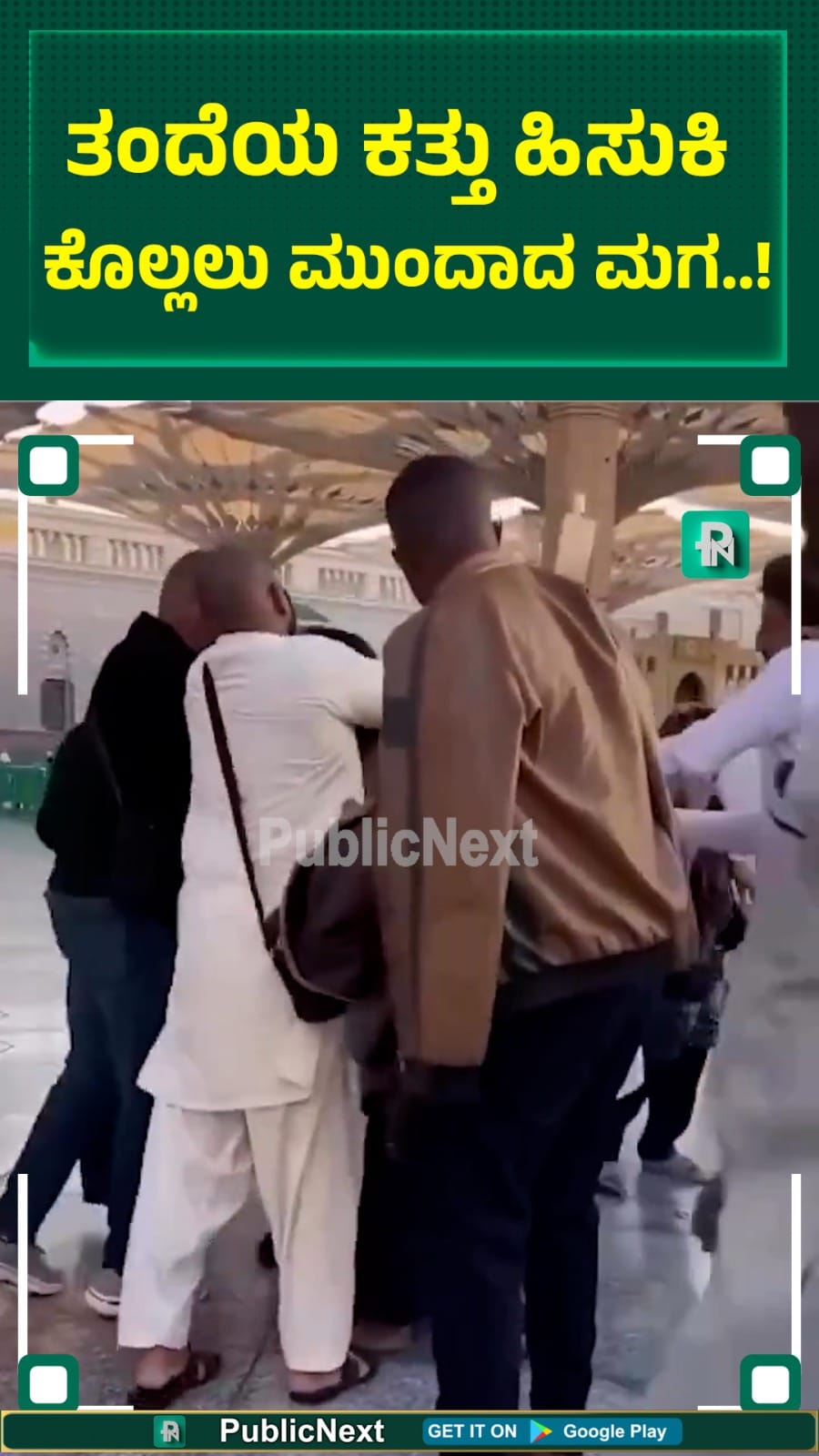 ಮದೀನಾದ ಪವಿತ್ರ ಮಸೀದಿಯ ಒಳಗಡೆ ಯಾತ್ರಾರ್ಥಿಯೊಬ್ಬ ತನ್ನ ವೃದ್ಧ ತಂದೆಯ ಕುತ್ತಿಗೆ ಹಿಸುಕಿ ಕೊಲ್ಲಲು ಪ್ರಯತ್ನಿಸಿದ್ದಾನೆ. ತನ್ನ ಶಕ್ತಿಯನ್ನೆಲ್ಲಾ ಬಳಸಿ ತಂದೆಯ ಉಸಿರು ಗಟ್ಟಿಸಲು ಆತ ಮುಂದಾದಾಗ ಸ್ಥಳದಲ್ಲಿದ್ದವರು ಹೌಹಾರಿದ್ದಾರೆ.