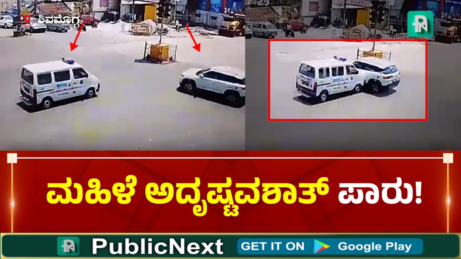 ಶಿವಮೊಗ್ಗ : ನಗರದ ಅಕ್ಕಮಹಾದೇವಿ ವೃತ್ತದಲ್ಲಿ ಆಂಬ್ಯುಲೆನ್ಸ್ ಮತ್ತು ಕಾರಿನ ಮಧ್ಯೆ ಸಂಭವಿಸಿದ ಅಪಘಾತದ ದೃಶ್ಯ ಸಿಸಿಟಿವಿಯಲ್ಲಿ ಸೆರೆಯಾಗಿದೆ. ಆಂಬ್ಯುಲೆನ್ಸ್ ಚಾಲಕನ ನಿರ್ಲಕ್ಷ್ಯ ಮತ್ತು ಸರ್ಕಲ್ ನಲ್ಲಿ ಅತಿ ವೇಗದ ಚಾಲನೆಯೇ ಅಪಘಾತಕ್ಕೆ ಕಾರಣವಾಗಿದೆ.