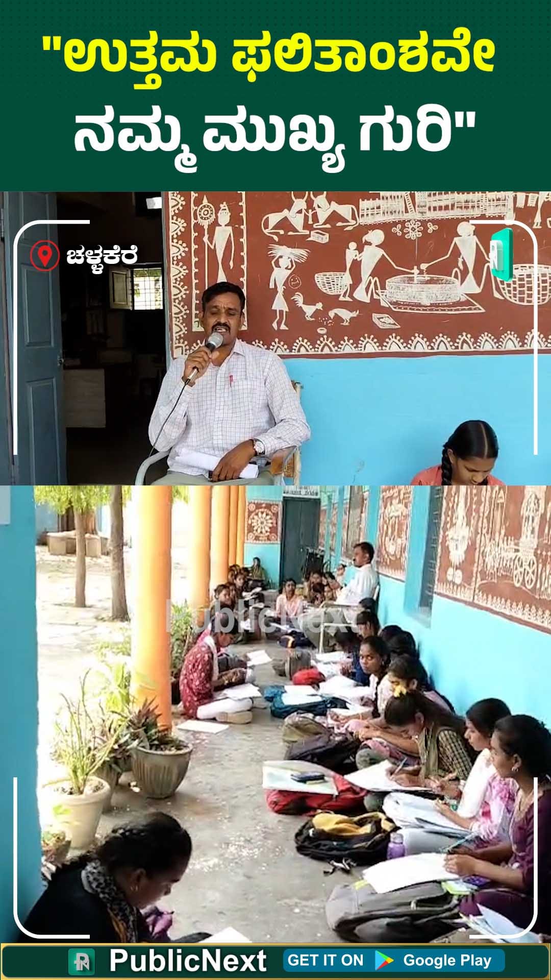 "ವಿದ್ಯಾರ್ಥಿಗಳ ಉತ್ತಮ ಫಲಿತಾಂಶವೇ ನಮ್ಮ ಮುಖ್ಯ ಗುರಿ. ರಜೆ ದಿನಗಳನ್ನೂ ಮೀಸಲಿಟ್ಟು ಅವರಿಗೆ ಸಮಗ್ರ ತರಬೇತಿ ನೀಡುತ್ತಿದ್ದೇವೆ" ಎಂದು ಮುಖ್ಯ ಶಿಕ್ಷಕ ವೀರಣ್ಣ ತಿಳಿಸಿದರು.