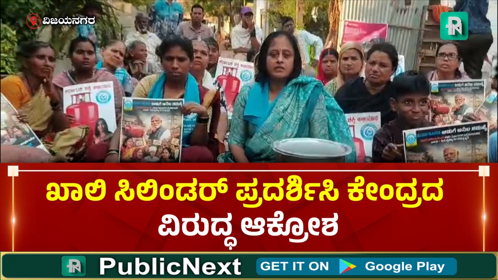 ವಿಜಯನಗರ ಜಿಲ್ಲೆಯ ಹರಪನಹಳ್ಳಿ ಪಟ್ಟಣದಲ್ಲಿ ಕಾಂಗ್ರೆಸ್ನಿಂದ ವಿಭಿನ್ನ ಪ್ರತಿಭಟನೆ ನಡೆದಿದೆ. ಖಾಲಿ ಸಿಲಿಂಡರ್ ಪ್ರದರ್ಶನ ಮಾಡಿ, ಸೌದೆಯ ಮೂಲಕ ಅಡುಗೆ ಮಾಡಿ ಪ್ರತಿಭಟನೆ ನಡೆಸಿದ್ದಾರೆ.