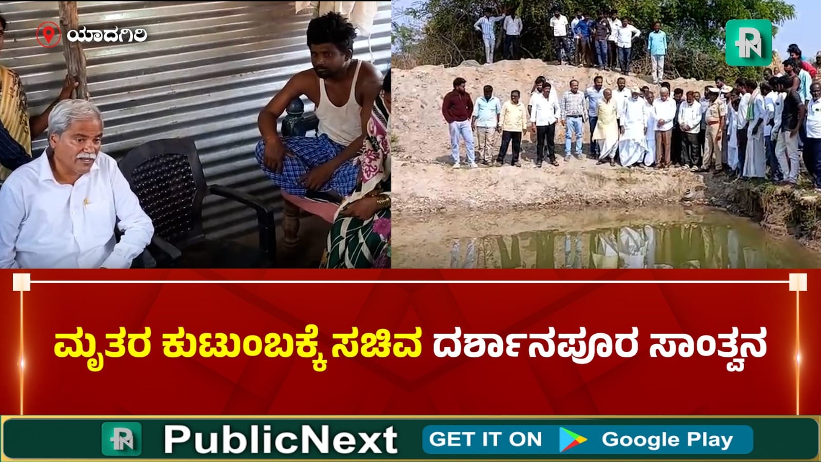 ಯಾದಗಿರಿ : ಯಾದಗಿರಿಯ ಸುರಪುರ ತಾಲೂಕಿನ ನಗನೂರ ಗ್ರಾಮದಲ್ಲಿ ಒಂದೇ ಕುಟುಂಬದ ನಾಲ್ಕು ಮಕ್ಕಳು ಕೃಷಿಹೊಂಡಕ್ಕೆ ನೀರು ತರಲು ಹೋಗಿ ದಾರುಣವಾಗಿ ಸಾವನ್ನಪ್ಪಿದ ಘಟನೆ ಹಿನ್ನಲೆಯಲ್ಲಿ ಸಚಿವ ಶರಣಬಸಪ್ಪ ದರ್ಶಾನಪೂರ ಸ್ಥಳಕ್ಕೆ ಭೇಟಿ ನೀಡಿ ಪರಿಶೀಲನೆ ನಡೆಸಿದರು. ನಂತರ ಮೃತ ಮಕ್ಕಳ ಮನೆಗೆ ಭೇಟಿ ನೀಡಿ ಕುಟುಂಬಕ್ಕೆ ಸಾಂತ್ವಾನ ಹೇಳಿದರು.