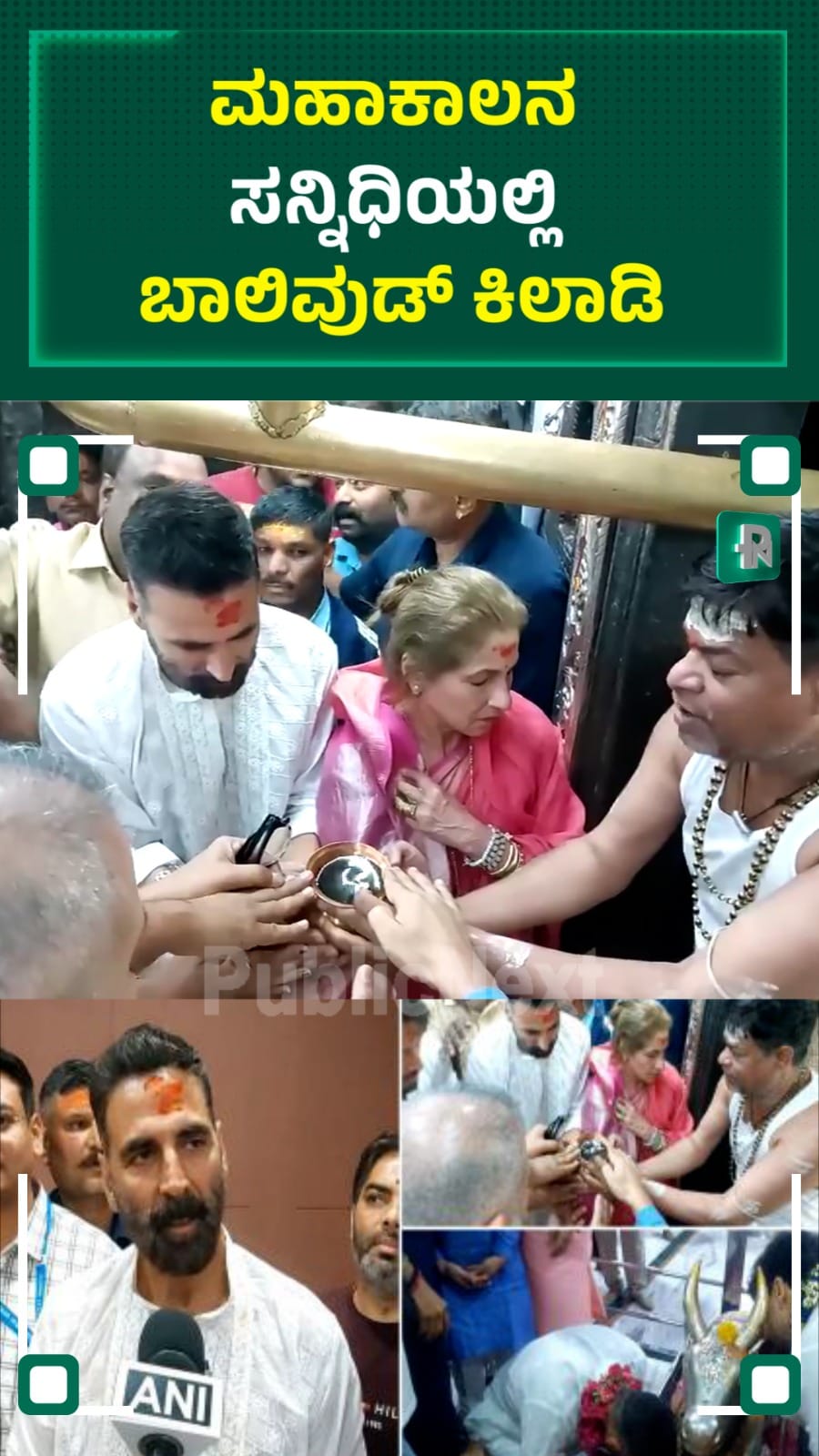 ಉಜ್ಜಯಿನಿ: ಬಾಲಿವುಡ್ ಖ್ಯಾತ ನಟ ಅಕ್ಷಯ್ ಕುಮಾರ್ ತಮ್ಮ ಅತ್ತೆ, ಹಿರಿಯ ನಟಿ ಡಿಂಪಲ್ ಕಪಾಡಿಯಾ ಅವರೊಂದಿಗೆ ಇಂದು ಮಧ್ಯಪ್ರದೇಶದ ವಿಶ್ವಪ್ರಸಿದ್ಧ ಶ್ರೀ ಮಹಾಕಾಳೇಶ್ವರ ದೇವಸ್ಥಾನಕ್ಕೆ ಭೇಟಿ ನೀಡಿ ವಿಶೇಷ ಪೂಜೆ ಸಲ್ಲಿಸಿದರು. ತಮ್ಮ ಮುಂಬರುವ ಬಹುನಿರೀಕ್ಷಿತ ಚಿತ್ರ 'ಭೂತ್ ಬಂಗ್ಲಾ' (Bhooth Bangla) ಬಿಡುಗಡೆಗೂ ಮುನ್ನ ಮಹಾಕಾಲನ ಆಶೀರ್ವಾದ ಪಡೆಯಲು ಅಕ್ಷಯ್ ಕುಮಾರ್ ಆಗಮಿಸಿದ್ದರು. ಬೆಳಗಿನ ಜಾವ ನಡೆದ ಪವಿತ್ರ 'ಭಸ್ಮ ಆರತಿ'ಯಲ್ಲಿ ಭಾಗವಹಿಸಿದ ಅವರು, ಬಳಿಕ ನಂದಿಯ ಕಿವಿಯಲ್ಲಿ ತಮ್ಮ ಮನದಾಸೆಯನ್ನು ನಿವೇದಿಸಿಕೊಂಡರು.