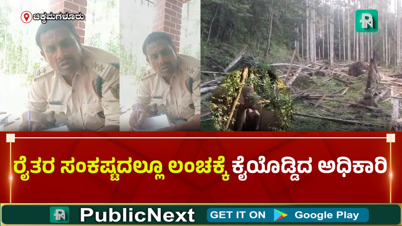ಚಿಕ್ಕಮಗಳೂರು: ಕಾಫಿನಾಡಿನಲ್ಲಿ ಕಾಡಾನೆ ಹಾವಳಿಯಿಂದ ಕಂಗೆಟ್ಟಿರುವ ರೈತರಿಗೆ ಸಾಂತ್ವನ ಹೇಳಬೇಕಾದ ಅರಣ್ಯ ಇಲಾಖೆಯ ಅಧಿಕಾರಿಯೇ ಈಗ ಲಂಚಕ್ಕಾಗಿ ಪೀಡಿಸಿರುವುದು ಜನಸಾಮಾನ್ಯರ ಆಕ್ರೋಶಕ್ಕೆ ಕಾರಣವಾಗಿದೆ. ತಾಲೂಕಿನ ಕಣತಿ ಗ್ರಾಮದ ರೈತರೊಬ್ಬರು ಕಾಡಾನೆ ದಾಳಿಯಿಂದಾಗಿ ಸುಮಾರು 65 ಅಡಿಕೆ ಮರಗಳನ್ನು ಕಳೆದುಕೊಂಡು ಸಂಕಷ್ಟದಲ್ಲಿದ್ದರು. ಈ ನಷ್ಟದ ಕುರಿತು ಸರ್ಕಾರಕ್ಕೆ ವರದಿ ಸಲ್ಲಿಸಿ ಪರಿಹಾರ ಕೊಡಿಸಬೇಕಾದ ಕಣತಿ ಬೀಟ್ನ ಡಿ.ಆರ್.ಎಫ್.ಓ ವೀರಭದ್ರ ನಾಯಕ್ ಎಂಬ ಅಧಿಕಾರಿ, ನೇರವಾಗಿಯೇ ರೈತನ ಬಳಿ ಲಂಚಕ್ಕೆ ಬೇಡಿಕೆ ಇಟ್ಟಿದ್ದಾರೆ.