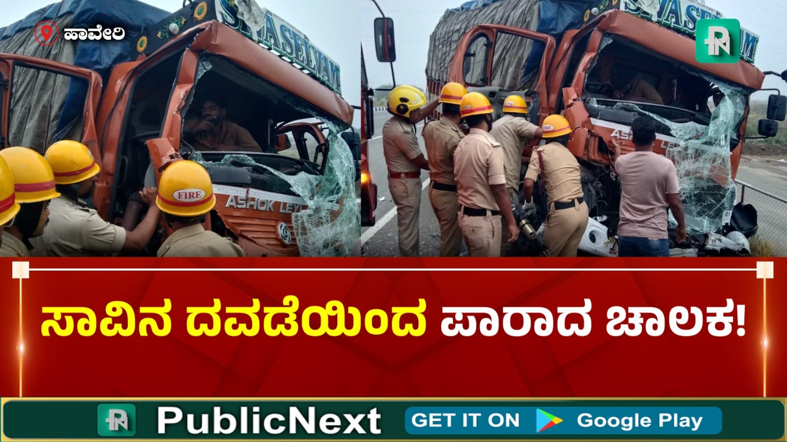 ಹಾವೇರಿ ಹೊರವಲಯದ ರಾಷ್ಟ್ರೀಯ ಹೆದ್ದಾರಿ 48ರಲ್ಲಿ ಭೀಕರ ಅಪಘಾತವೊಂದು ಸಂಭವಿಸಿದೆ. ನಿಂತಿದ್ದ ಲಾರಿಗೆ ಮತ್ತೊಂದು ಲಾರಿ ಡಿಕ್ಕಿ ಹೊಡೆದ ಪರಿಣಾಮ, ಲಾರಿಯ ಮುಂಭಾಗದಲ್ಲಿ ಚಾಲಕ ಸಿಲುಕಿ ತೀವ್ರವಾಗಿ ಪರದಾಡಿದ್ದಾರೆ.
