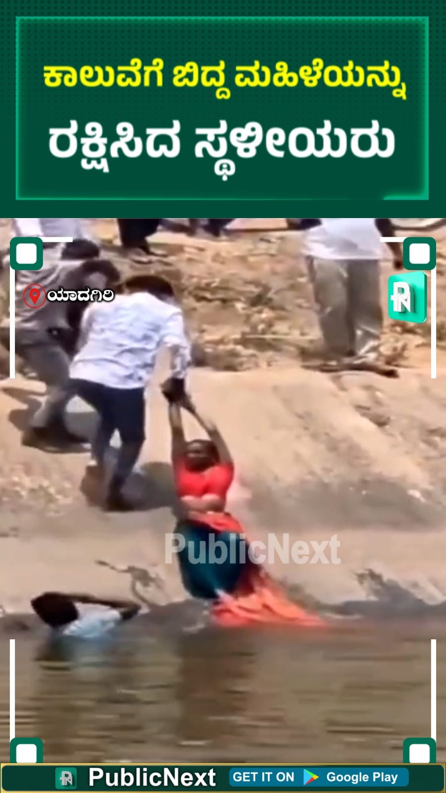 ನೀರಿನಲ್ಲಿ ಕೊಚ್ಚಿ ಹೋಗುತ್ತಿದ್ದ ಮಹಿಳೆಯನ್ನು ನೋಡಿದ ತಕ್ಷಣ, ಸ್ಥಳೀಯರು ಏಕಾಏಕಿ ಕಾಲುವೆಗೆ ಧುಮುಕಿ, ಹಗ್ಗದ ಸಹಾಯದಿಂದ ಅವರನ್ನು ಸುರಕ್ಷಿತವಾಗಿ ಹೊರಗೆ ತಂದು ಪ್ರಾಣ ಉಳಿಸಿದ್ದಾರೆ. ಈ ಸಾಹಸಮಯ ರಕ್ಷಣಾ ಕಾರ್ಯ ಕೆಂಭಾವಿ ಪೊಲೀಸ್ ಠಾಣಾ ವ್ಯಾಪ್ತಿಯಲ್ಲಿ ನಡೆದಿದೆ.