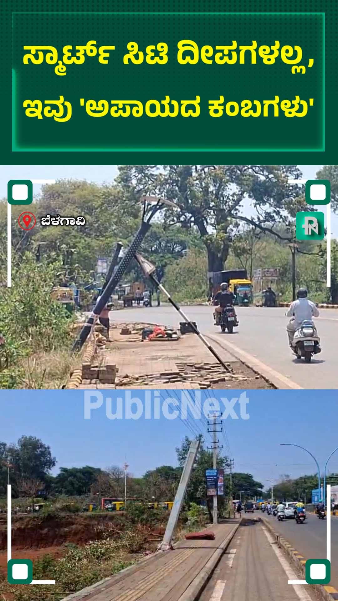 ಬೆಳಗಾವಿ: ಬೆಳಗಾವಿ ನಗರದಲ್ಲಿ ಸ್ಮಾರ್ಟಿ ಸಿಟಿ ಯೋಜನೆಯಡಿ ಬೀದಿಗಳ ಸೌಂದರ್ಯ ಹೆಚ್ಚಿಸಲು ಅಲಂಕಾರಿಕ ದೀಪಗಳನ್ನು ಅಳವಡಿಸಲಾಗಿದೆ. ಆದರೆ ಅದೇ ಅಲಂಕಾರಿಕ ದೀಪಗಳು ಜನರ ಪ್ರಾಣಕ್ಕೆ ಕುತ್ತು ತರುವ ವಾತಾವರಣ ನಿರ್ಮಾಣವಾಗಿದೆ.