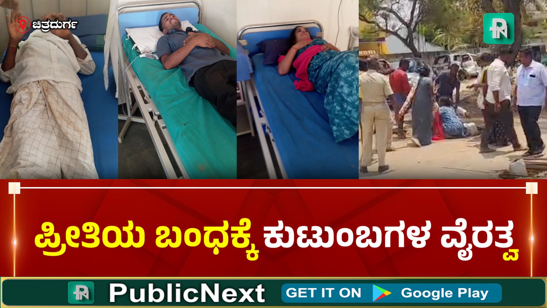 ಚಿತ್ರದುರ್ಗ: ಹೀಗೆ ಸಿನಿಮಾ ಸ್ಟೈಲ್ ನಲ್ಲಿ ಮನಸೋ ಇಚ್ಛೆ ಹೊಡೆಯುತ್ತಿರೋ ಯುವಕ. ಯುವಕನ ಏಟಿಗೆ ಆಸ್ಪತ್ರೆ ಬೆಡ್ ಸೇರಿರೋ ಹುಡುಗಿ ಪೋಷಕರು. ಈ ದೃಶ್ಯಕ್ಕೆ ಸಾಕ್ಷಿಯಾಗಿದ್ದು ಚಿತ್ರದುರ್ಗದ ಭರಮಸಾಗರ ಗ್ರಾಮ.