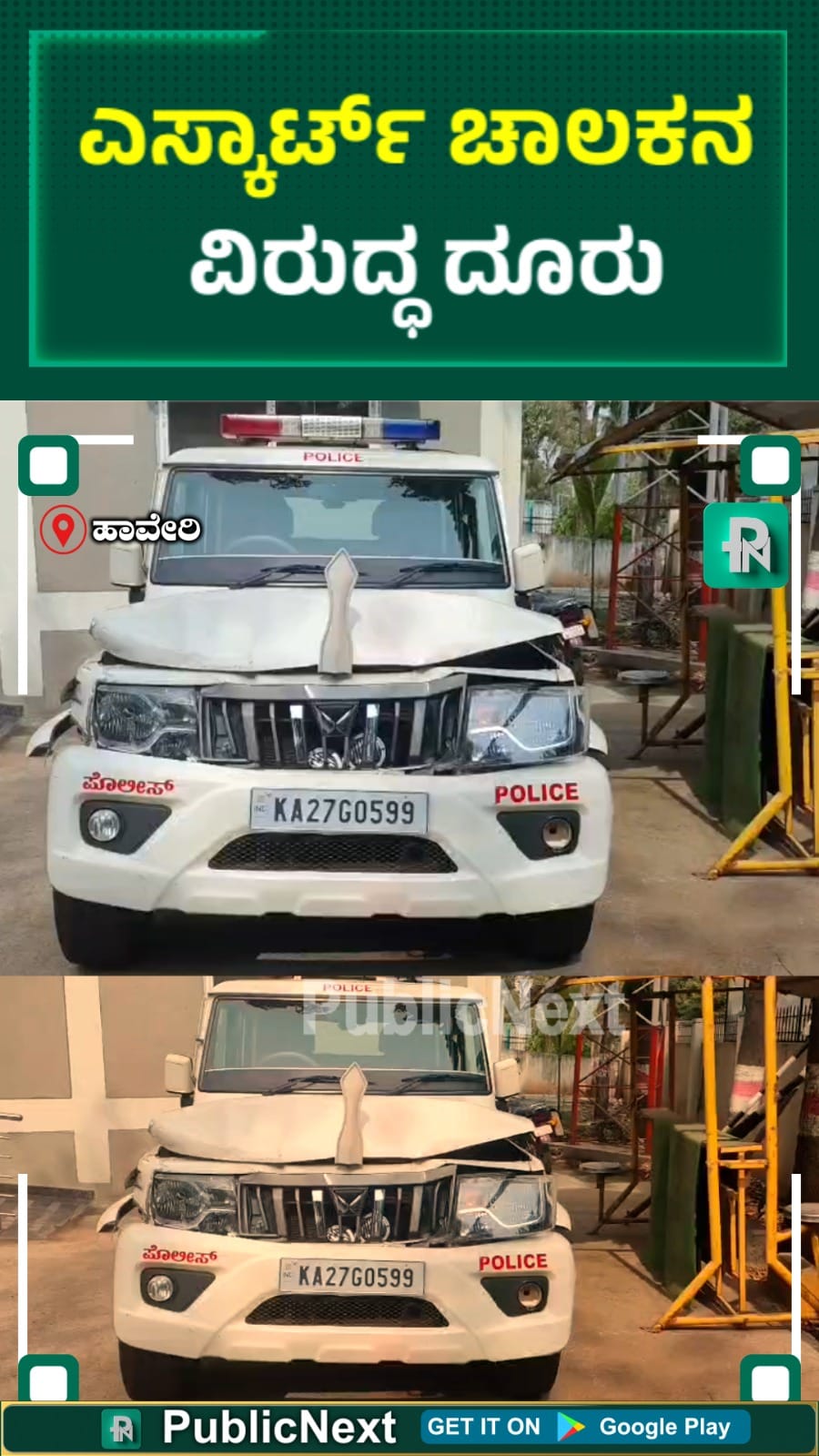 ಎಸ್ಕಾರ್ಟ್ ವಾಹನದ ಚಾಲಕ ಚನ್ನಬಸಪ್ಪ ಅರ್ಚಕ್ ವಿರುದ್ಧ ಹಾವೇರಿ ಸಂಚಾರಿ ಪೊಲೀಸ್ ಠಾಣೆಯಲ್ಲಿ ದೂರು ದಾಖಲಾಗಿದೆ. ಅತೀ ವೇಗದಿಂದ ಹೋಗಿ ಬಸ್ ಗೆ ಡಿಕ್ಕಿ ಹೊಡೆದಿದ್ದಾನೆ. ಎಸ್ಕಾರ್ಟ್ ವಾಹನದ ಮುಂದಿನ ಭಾಗಕ್ಕೆ ಮತ್ತು ಬಸ್ ನ ಹಿಂದಿನ ಭಾಗಕ್ಕೆ ಹಾನಿಯಾಗಿದೆ. ಬಸ್ KA-27 F0726 ಸಂಖ್ಯೆ ಬಸ್ ಗೆ ಹಿಂದಿನಿಂದ ವೇಗವಾಗಿ ಎಸ್ಕಾರ್ಟ್ ವಾಹನ ಡಿಕ್ಕಿ ಹೊಡೆದಿದೆ.