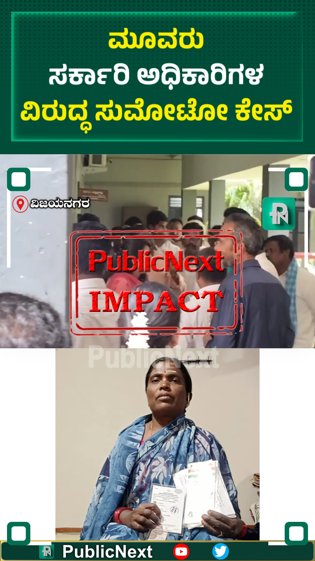 ಹೊಸಪೇಟೆ ತಹಶಿಲ್ದಾರ್, ಹೊಸಪೇಟೆ ಇಓ, ಗ್ರಾ.ಪಂ ಪಿಡಿಓ ವಿರುದ್ಧ ಲೋಕಾಯುಕ್ತದಲ್ಲಿ ಸ್ವಯಂಕೃತ ದೂರು ದಾಖಲಾಗಿದೆ. ಸತ್ತ ಮಹಿಳೆ ಜೀವಂತ, ಜೀವಂತ ಮಹಿಳೆ ಸಾವು ಅಂತ ನಮೂದು ಅನ್ನೋ ಟ್ಯಾಗ್ ಲೈನ್ ಅಡಿ ಪಬ್ಲಿಕ್ ನೆಕ್ಸ್ಟ್ ರಾಜ್ಯಾದ್ಯಂತ ವರದಿ ಬಿತ್ತರಿಸಿತ್ತು.