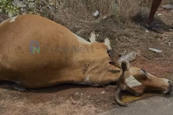 ರಾಷ್ಟ್ರೀಯ ಹೆದ್ದಾರಿ ದಾಟುತ್ತಿದ್ದ ಹಸು ಕಾರು ಒಂದನ್ನು ಕಂಡು ಹಿಂದಕ್ಕೆ ಸರಿದು ಬಂದಿದೆ. ಈ ವೇಳೆ ಅತಿ ವೇಗವಾಗಿ ಬಂದ ಟಿಪ್ಪರ್ ಡಿಕ್ಕಿ ಹೊಡೆದಿದ್ದು, ಇದರ ಪರಿಣಾಮ ಗರ್ಭಿಣಿ ಹಸು ಸ್ಥಳದಲ್ಲೇ ಮೃತಪಟ್ಟಿದೆ.