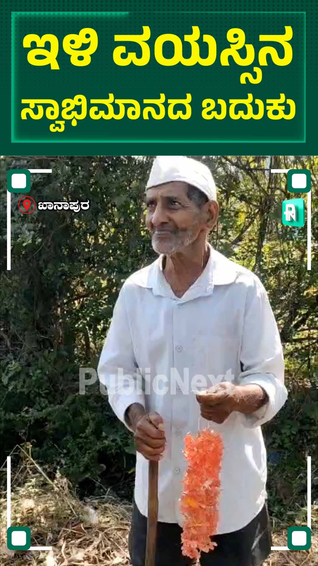 ಮಹಾರಾಷ್ಟ್ರದ ಗಡಿ ಭಾಗದ ಖಾನಾಪುರದಲ್ಲಿ ನಮ್ಮ ಕಣ್ಣಿಗೆ ಕಂಡ ಈ ವೃದ್ಧನ ಹೆಸರು ಪುನ್ನಪ್ಪ. ರಸ್ತೆಯ ಪಕ್ಕ ನಿಂತು ಹಾದು ಹೋಗುವ ವಾಹನಗಳಿಗೆ ಕೈ ಮಾಡಿ ತಾನು ಸಿದ್ಧಪಡಿಸಿದ ಅಬುಲಿ ಹೂವುಗಳ ಮಾಲೆಯನ್ನು ಮಾರಾಟ ಮಾಡುವುದು ಇವರ ಕಾಯಕ. ಇರುವ ಇಬ್ಬರು ಮಕ್ಕಳು ಬೆಳಗಾವಿಯಲ್ಲಿ ಗಾರೆ ಕೆಲಸ ಮಾಡ್ತಾರೆ. ಕುಳಿತು ಉಂಡರೆ ಕುಡಿಕೆ ಹೊನ್ನು ಸಾಲದು ಎಂಬಂತೆ ಇಳಿ ವಯಸ್ಸನ್ನೂ ಲೆಕ್ಕಿಸದೇ ಸ್ವಾಭಿಮಾನದ ಬದುಕನ್ನು ಪುನ್ನಪ್ಪ ನಡೆಸುತ್ತಿದ್ದಾರೆ. ಜಗವೆಲ್ಲ ದುಡಿಯುತಿದೆ ನೋಡೊಮ್ಮೆ ಎದ್ದು ದುಡಿದು ತಿನ್ನುವುದೇ ಬಡತನಕ್ಕೆ ಮದ್ದು ಎಂಬ ಸುಭಾಷಿತದಂತೆ ಕಟ್ಟೆಯ ಮೇಲೆ ಹರಟೆ ಹೊಡೆಯುತ್ತ ತಂದೆ, ತಾಯಿಯನ್ನು ಇಂದಿಗೂ ದುಡಿಸುತ್ತಿರುವ ಅನೇಕ ಜನ ಯುವಕರಿಗೆ ಈ ಇಳಿ ವಯಸ್ಸಿನ ವೃದ್ಧ ಮಾದರಿಯಾಗಬೇಕಲ್ಲವೇ?-