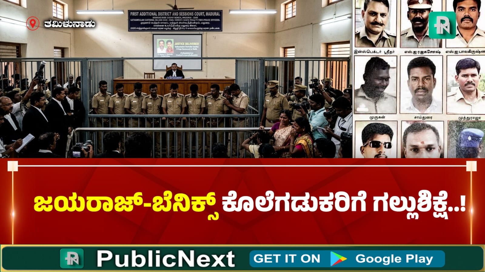 ಇಡೀ ದೇಶವನ್ನೇ ಬೆಚ್ಚಿಬೀಳಿಸಿದ್ದ ತೂತುಕುಡಿಯ ತಂದೆ-ಮಗನ ಕಸ್ಟಡಿಯಲ್ ಡೆತ್ ಪ್ರಕರಣಕ್ಕೆ ಸಂಬಂಧಿಸಿದಂತೆ ಇಂದು ಮಧುರೈ ನ್ಯಾಯಾಲಯ ಐತಿಹಾಸಿಕ ತೀರ್ಪು ನೀಡಿದೆ. ಸರ್ಕಾರದ ನಿಯಮಗಳನ್ನೇ ಗಾಳಿಗೆ ತೂರಿ, ಅಧಿಕಾರದ ಮದದಿಂದ ಇಬ್ಬರು ಅಮಾಯಕರನ್ನು ಬಲಿ ಪಡೆದ ಒಂಬತ್ತೂ ಮಂದಿ ಪೊಲೀಸ್ ಸಿಬ್ಬಂದಿಗೆ ಮರಣದಂಡನೆ ವಿಧಿಸಲಾಗಿದೆ.