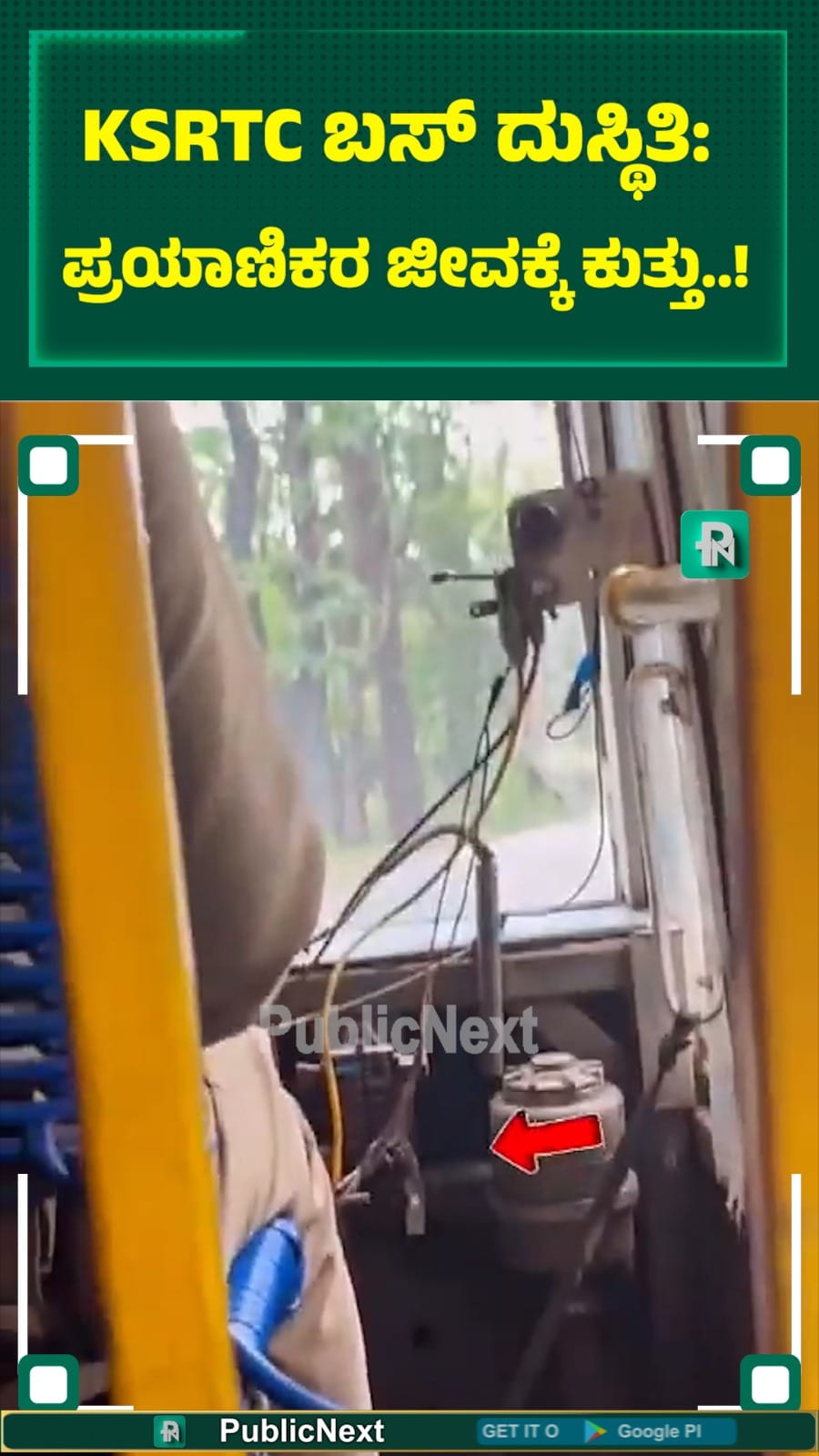 ಚಾಲಕನಿಗೆ ಸರಿಯಾದ ಆಸನವೇ ಇಲ್ಲದಿದ್ದರೆ ಅಪಘಾತ ಸಂಭವಿಸಿದರೆ ಹೊಣೆ ಯಾರು? ಬಸ್ಸಿನ ಟೈರ್ ಹತ್ತಿರ ಯಾವುದೋ ದ್ರವ ಸೋರಿಕೆಯಾಗುತ್ತಿದ್ದು, ಇದು ಬ್ರೇಕ್ ಫೇಲ್ ಅಥವಾ ಇಂಜಿನ್ ದೋಷದ ಮುನ್ಸೂಚನೆಯಂತೆ ಕಾಣುತ್ತಿದೆ. ದಿನನಿತ್ಯ ಸಾವಿರಾರು ಕಿಲೋಮೀಟರ್ ಸಂಚರಿಸುವ ಈ ಬಸ್ಗಳಲ್ಲಿ ಪ್ರಯಾಣಿಕರ ಜೀವಕ್ಕೆ ಬೆಲೆಯೇ ಇಲ್ಲದಂತಾಗಿದೆ. ಇದು ಕೇವಲ ಒಂದು ಬಸ್ಸಿನ ಕಥೆಯಲ್ಲ, ರಾಜ್ಯದ ಹಲವು ಡಿಪೋಗಳಲ್ಲಿನ ಬಸ್ಗಳ ಸ್ಥಿತಿ ಹೀಗೆಯೇ ಇದೆ. ಚಾಲಕರು ಅನಿವಾರ್ಯವಾಗಿ ಇಂತಹ ವಾಹನಗಳನ್ನು ರಸ್ತೆಗಿಳಿಸುತ್ತಿದ್ದಾರೆ. ದೊಡ್ಡ ದುರಂತ ಸಂಭವಿಸುವ ಮುನ್ನ ಸಾರಿಗೆ ಸಚಿವರು ಮತ್ತು ಅಧಿಕಾರಿಗಳು ಎಚ್ಚೆತ್ತುಕೊಂಡು ಸೂಕ್ತ ತಪಾಸಣೆ ನಡೆಸಬೇಕಿದೆ.