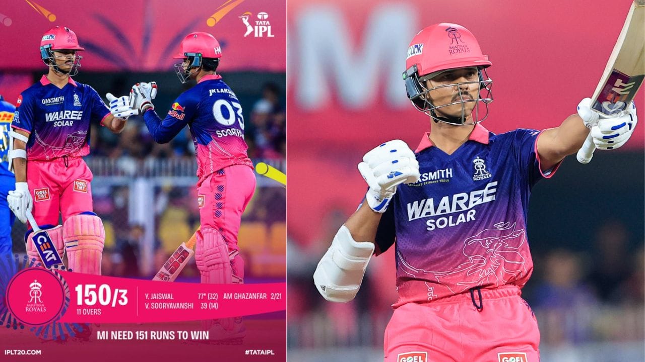 ಗುವಾಹಟಿ: ಯಶಸ್ವಿ ಜೈಸ್ವಾಲ್ ಅರ್ಧಶತಕ, ವೈಭವ್ ಸೂರ್ಯವಂಶಿ ಅಬ್ಬರದ ಬ್ಯಾಟಿಂಗ್ ಸಹಾಯದಿಂದ ರಾಜಸ್ಥಾನ್ ರಾಯಲ್ಸ್ ತಂಡವು ಮುಂಬೈ ಇಂಡಿಯನ್ಸ್ಗೆ 151 ರನ್ಗಳ ಬಿಗ್ ಟಾರ್ಗೆಟ್ ನೀಡಿದೆ.