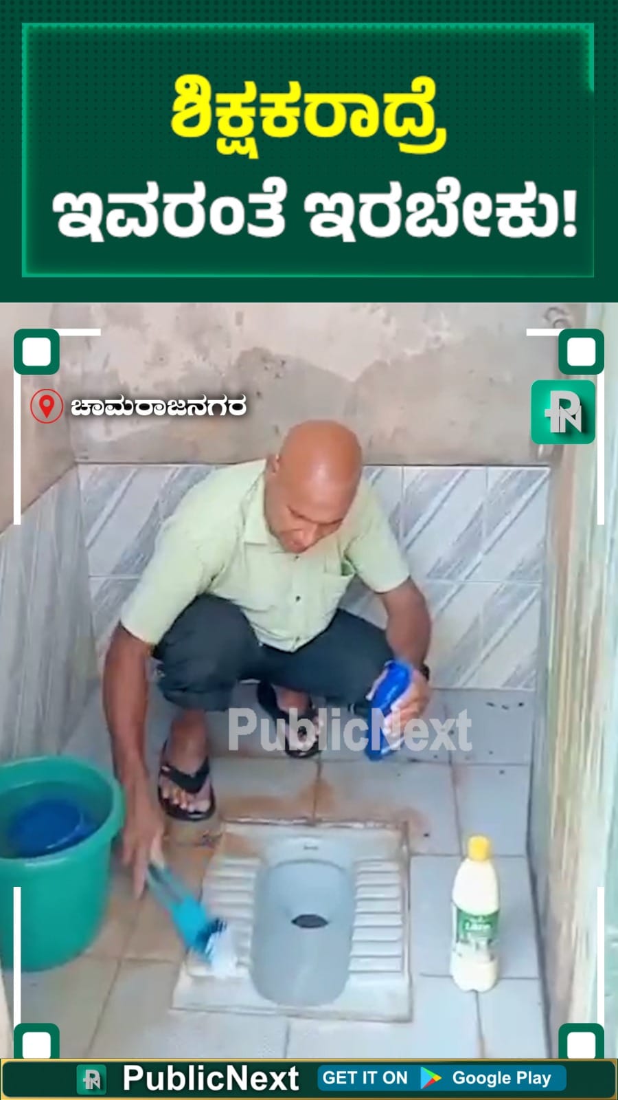 ಚಾಮರಾಜನಗರ : ಗುಂಡ್ಲುಪೇಟೆ ತಾಲೂಕಿನ ಕುಂದಕೆರೆ ಸರ್ಕಾರಿ ಪ್ರಾಥಮಿಕ ಶಾಲೆಯಲ್ಲಿ, ವರ್ಗಾವಣೆಗೊಂಡು ಬಂದ ಮೊದಲ ದಿನವೇ ಶಿಕ್ಷಕ ಮಹಾದೇಶ್ವರಸ್ವಾಮಿ ಅವರು ಶೌಚಾಲಯವನ್ನು ಸ್ವಚ್ಛಗೊಳಿಸುವ ಮೂಲಕ ಗಾಂಧಿವಾದವನ್ನು ಪ್ರದರ್ಶಿಸಿದ್ದಾರೆ.